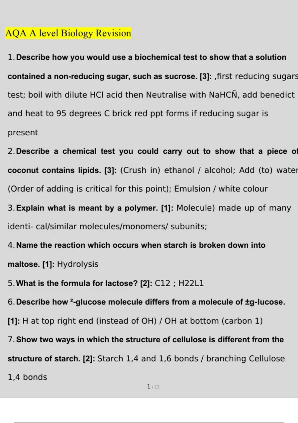 its function. [3]: Formed from ±glucose; Joined by condensation/ by the