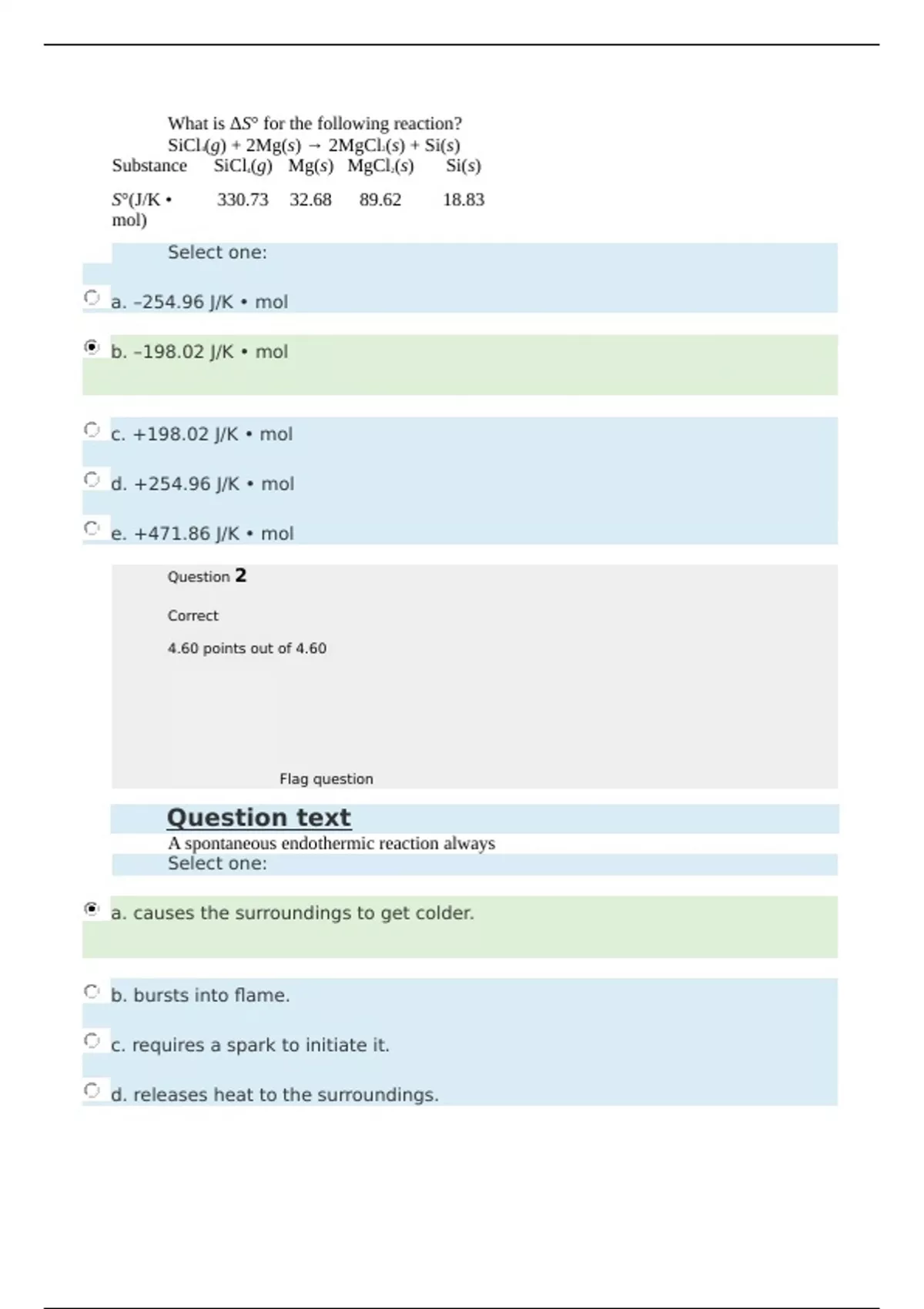 Substance SiCl4(g) Mg(s) MgCl2(s) Si(s)