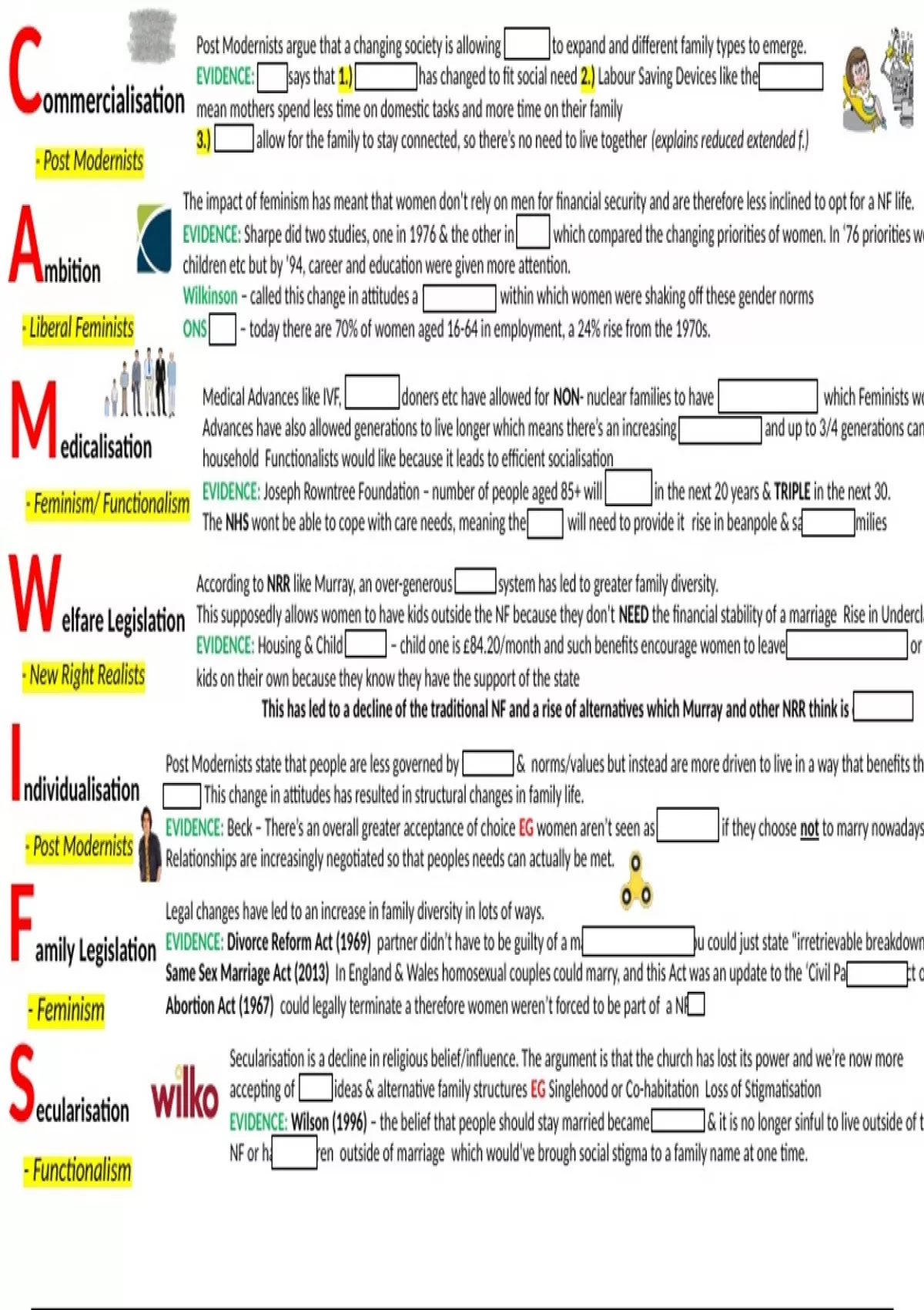 accepting of liberal ideas & alternative family structures EG Singlehood or Co-habitation Loss of Stigmatisation