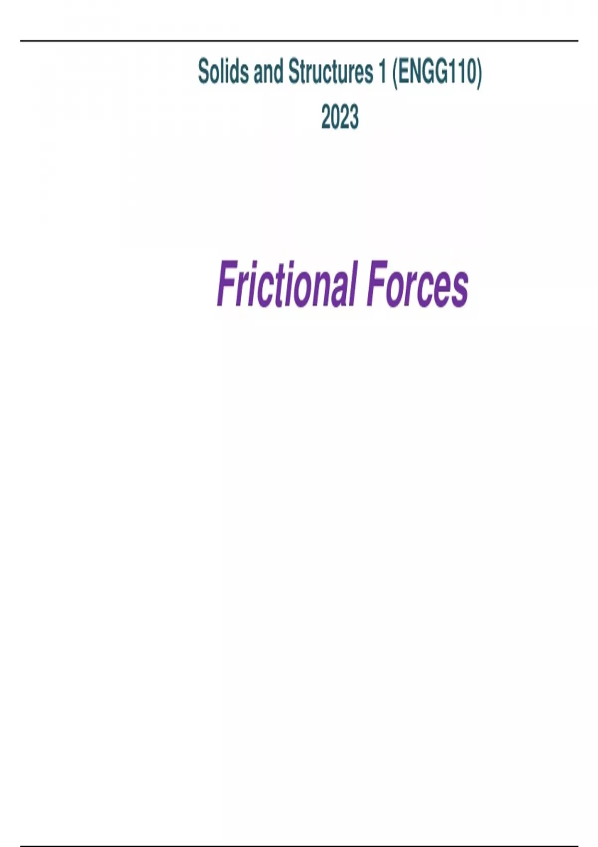 Solids and Structures 1 (ENGG110) 2023 Frictional Forces