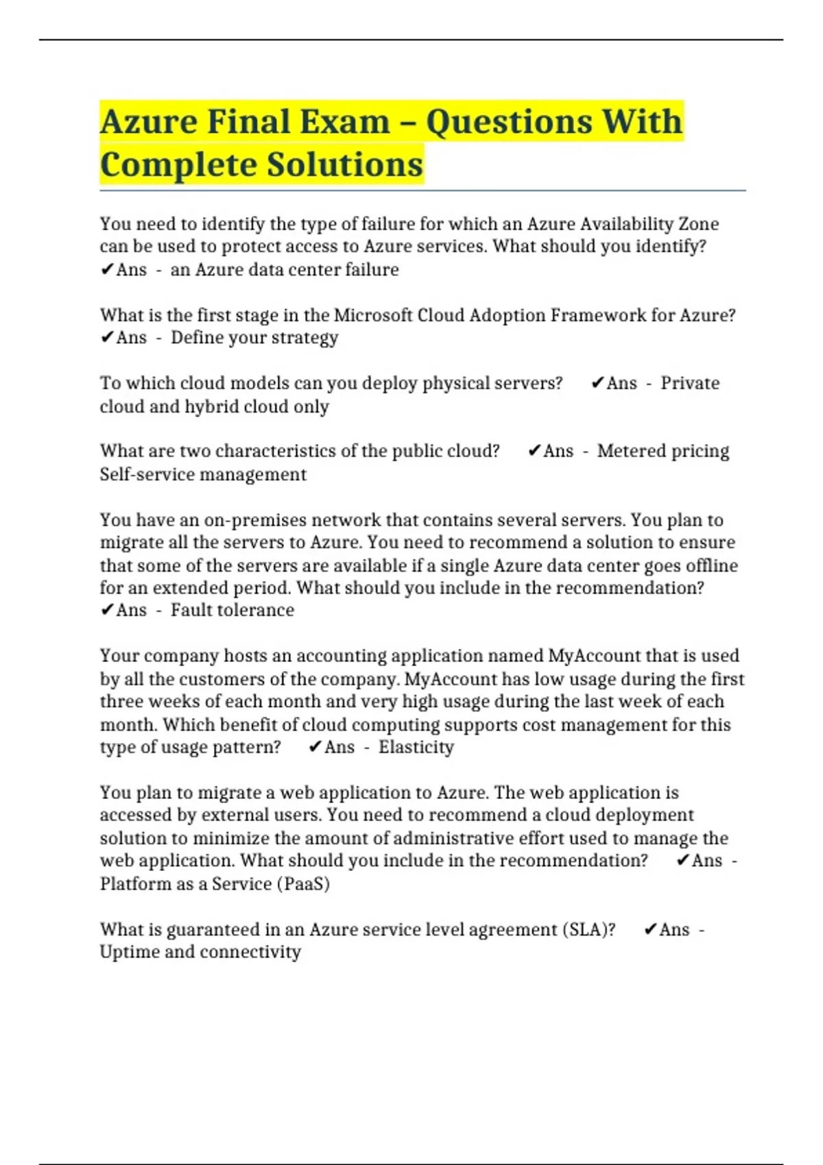 Azure Final Exam – Questions With Complete Solutions