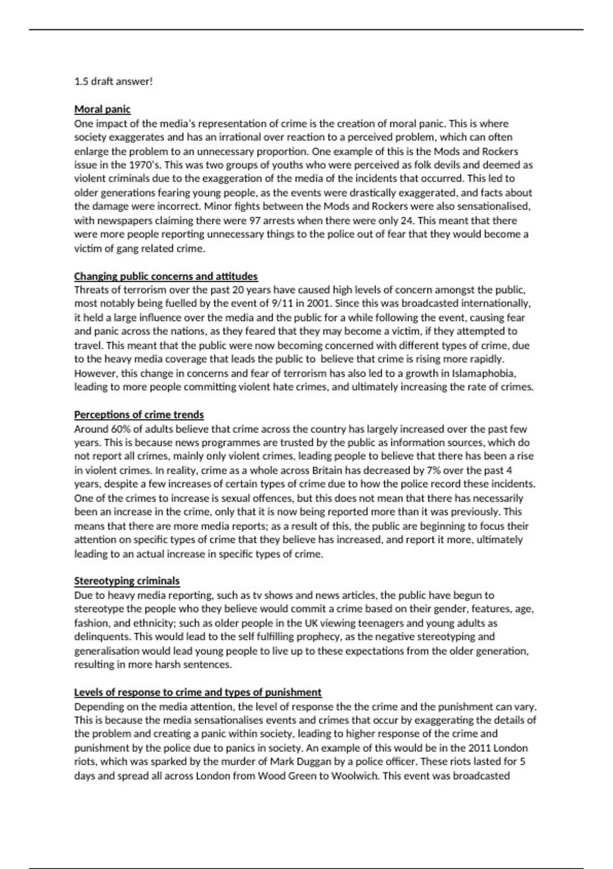 One impact of the media’s representation of crime is the creation of moral panic. This is where