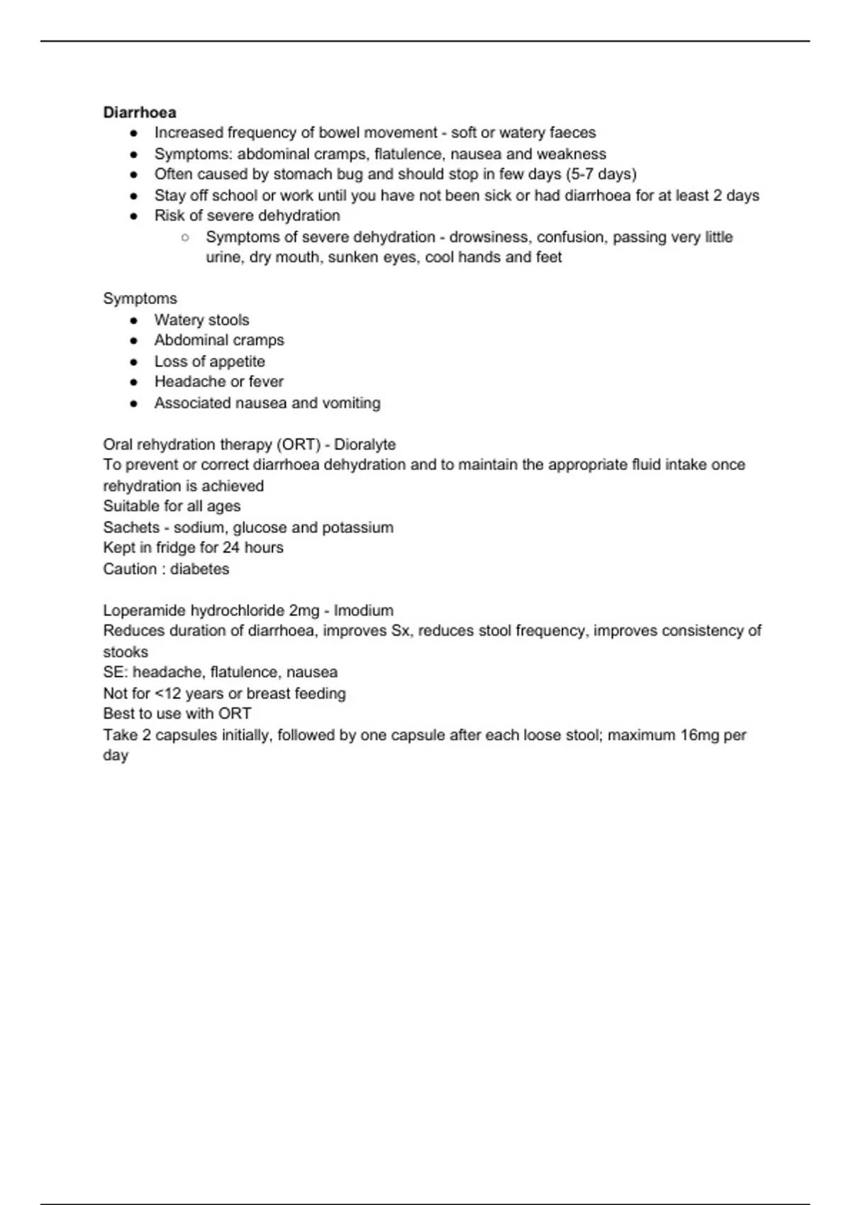 Summary Diarrhoea