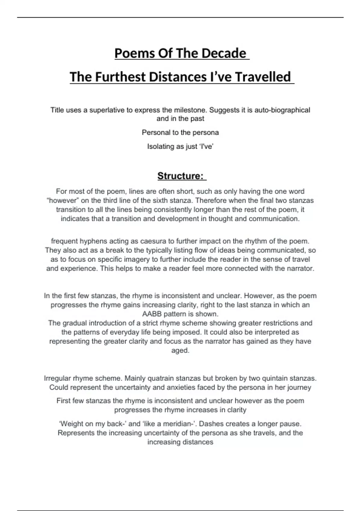 frequent hyphens acting as caesura to further impact on the rhythm of the poem.