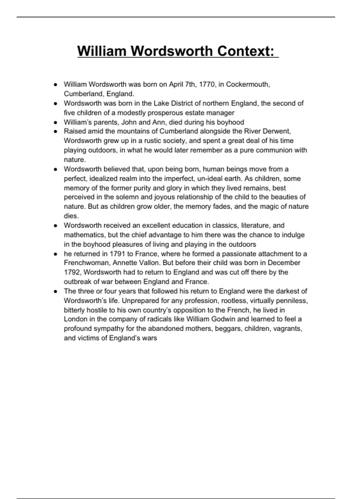 ● William Wordsworth was born on April 7th, 1770, in Cockermouth,