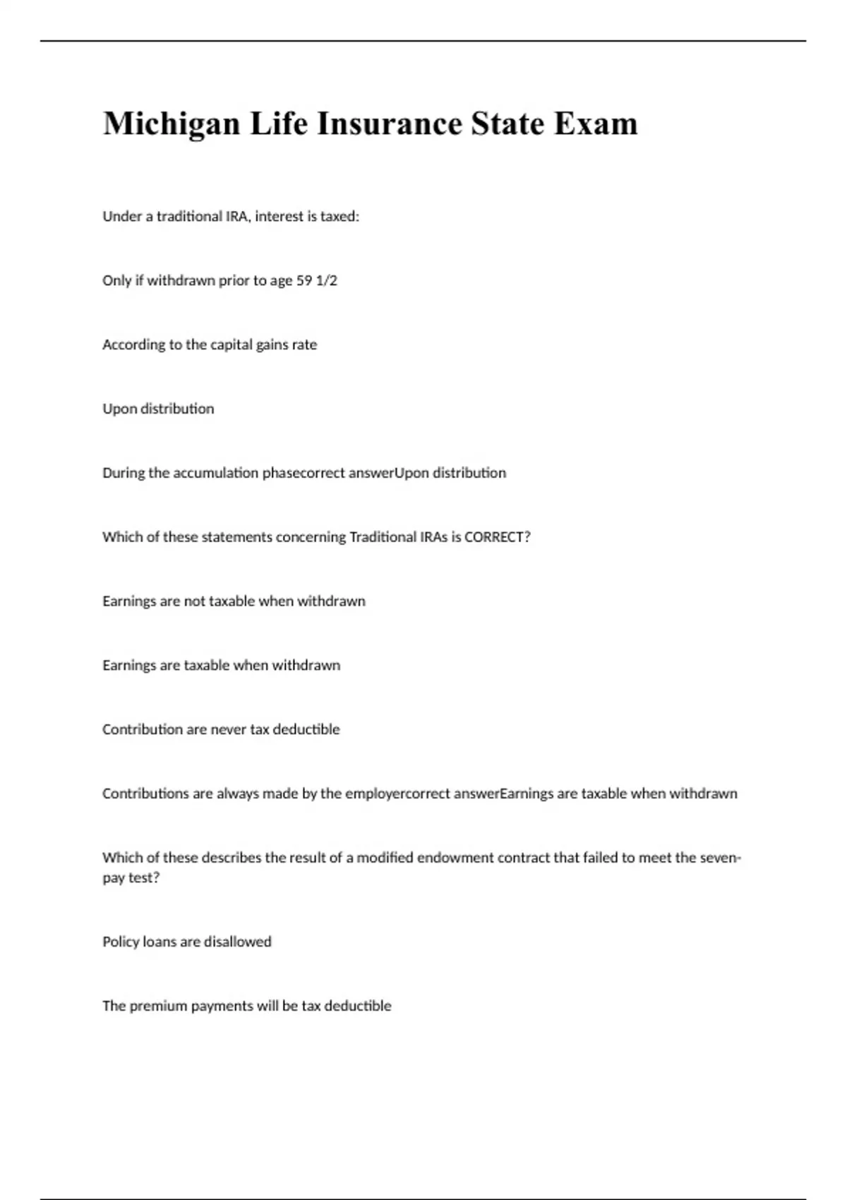 Michigan Life Insurance State Exam 2023 with 100% correct answers