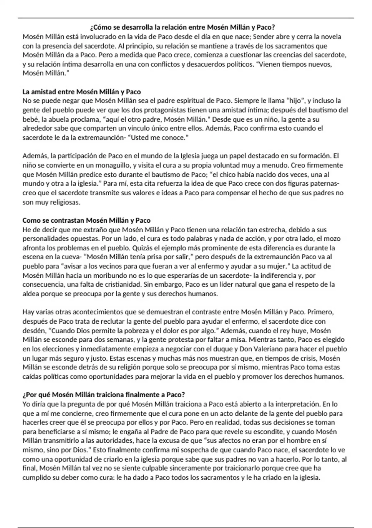 Yo diría que la pregunta de por qué Mosén Millán traiciona a Paco está abierto a la interpretación. En lo
