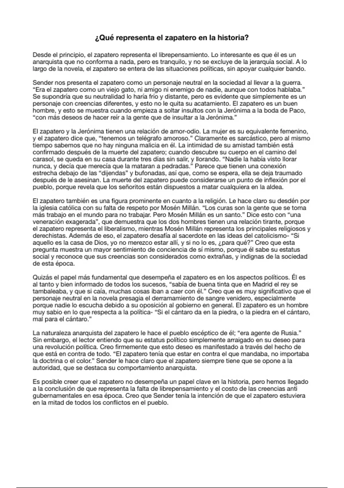 An essay I wrote surrounding the prompt, “What does el zapatero represent in the story?”, for Sender’s novel Réquiem por un campesino español
