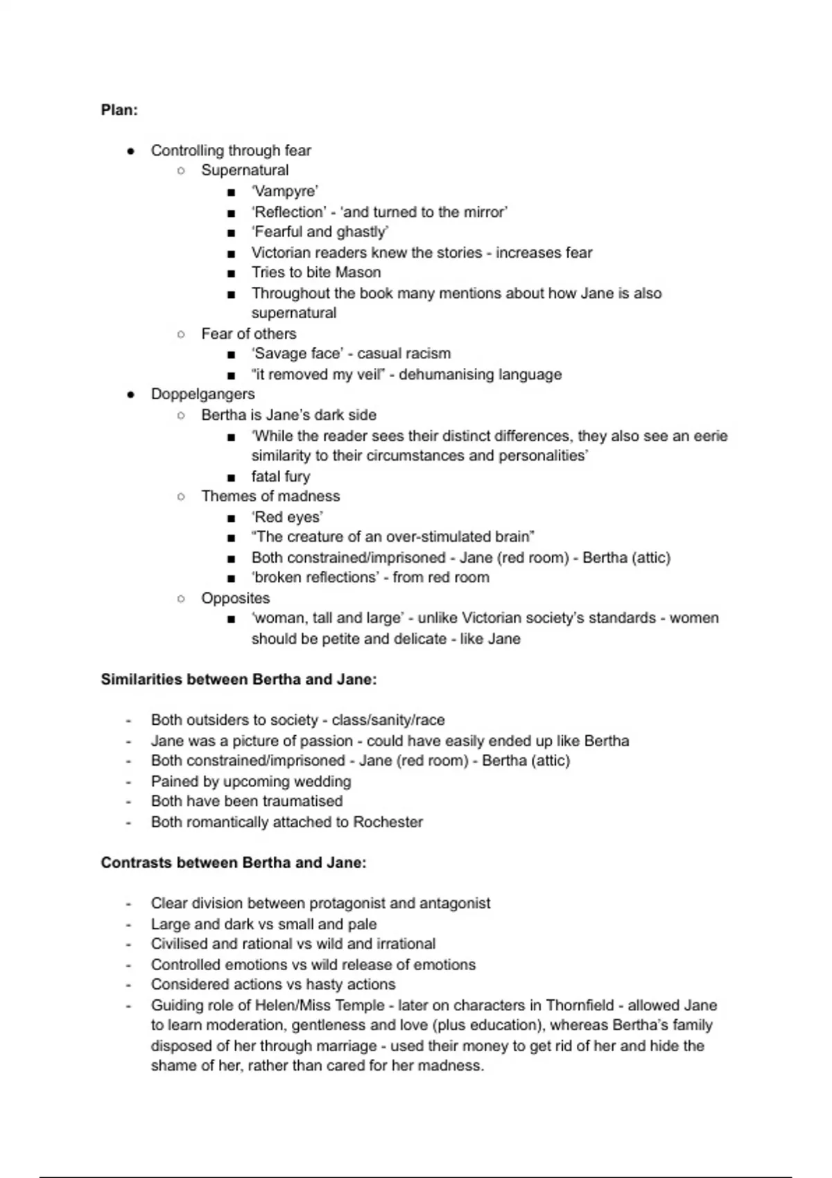 - Both constrained/imprisoned - Jane (red room) - Bertha (attic)
