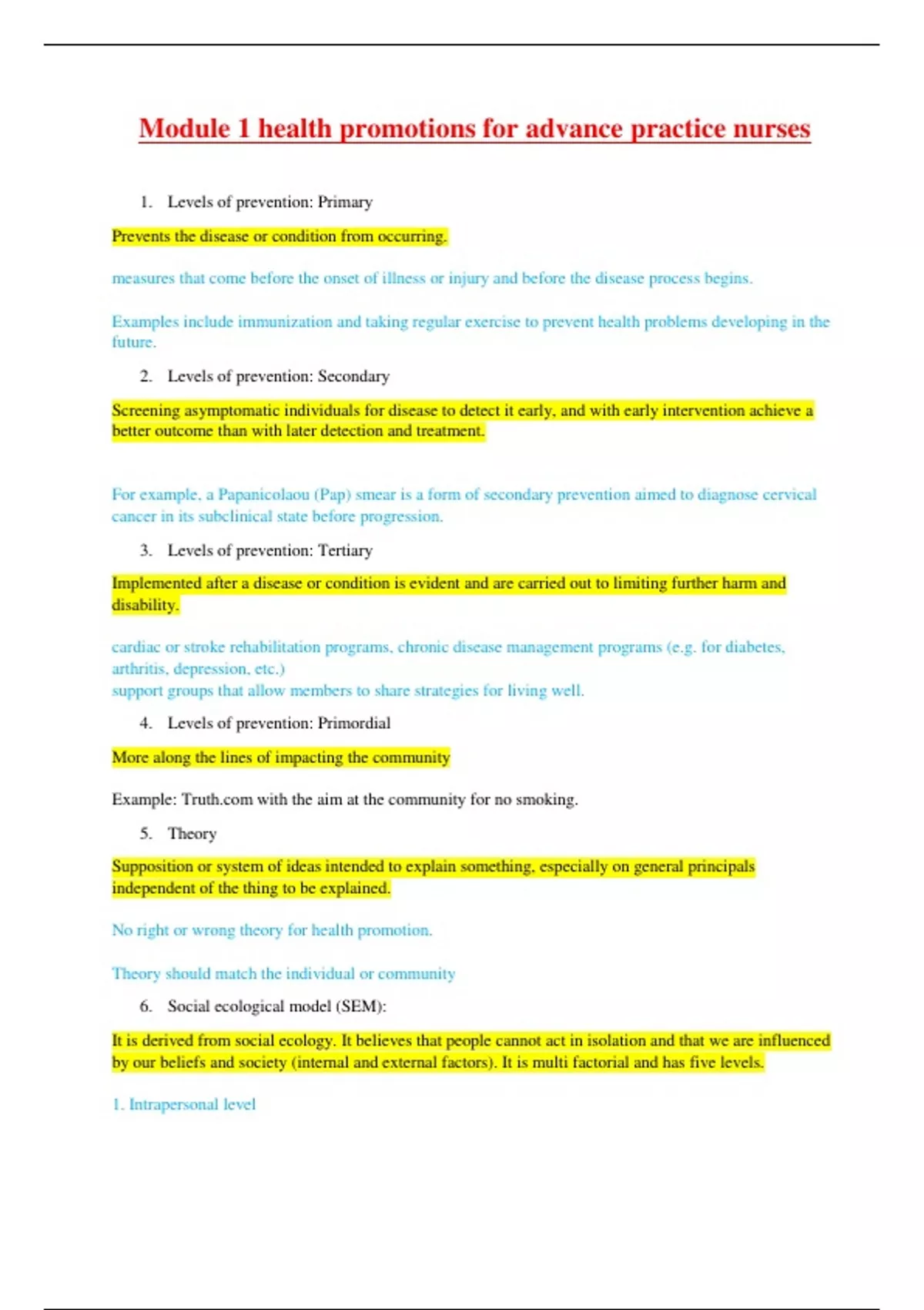 1. Levels of prevention: Primary