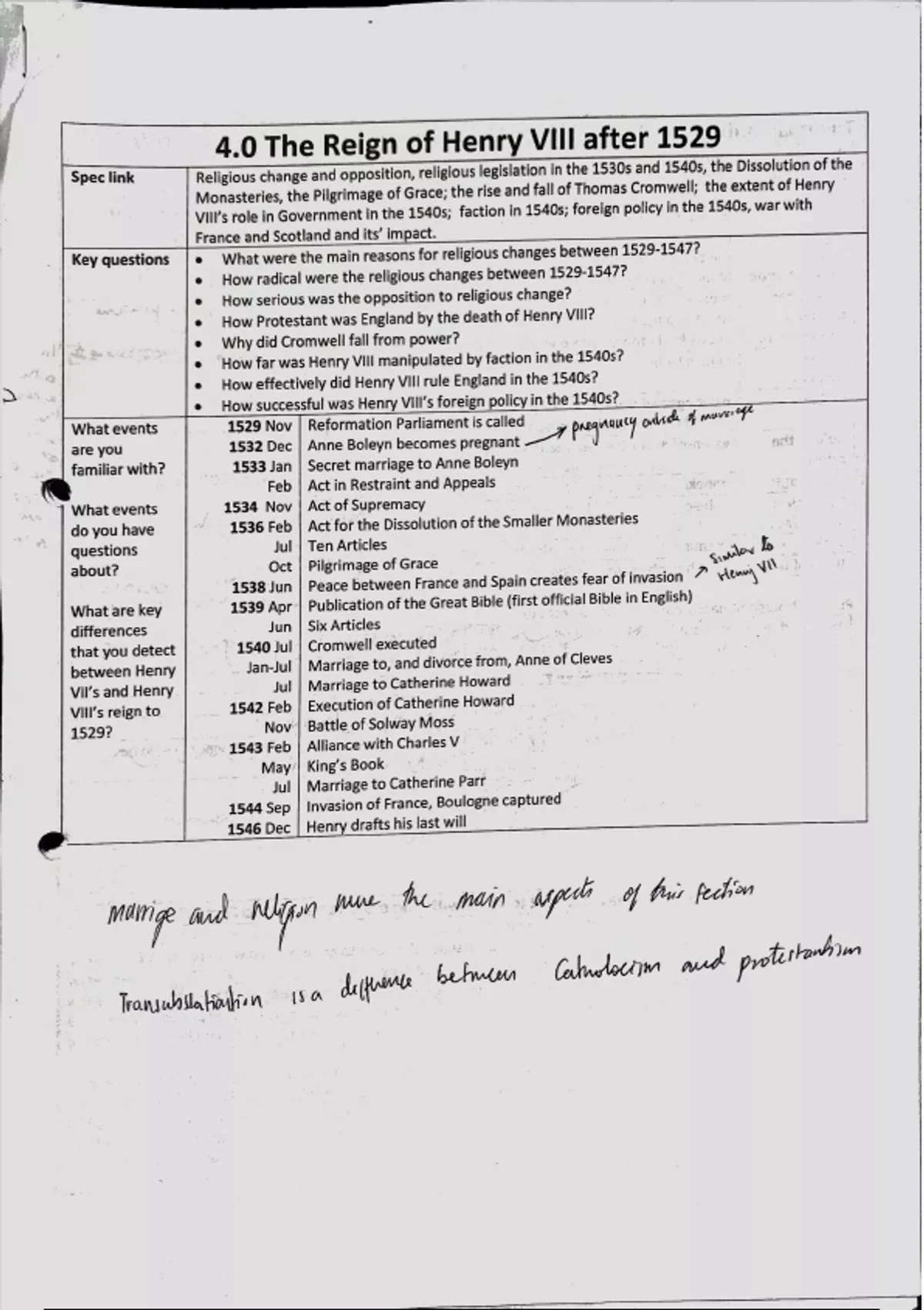 Reign of King Henry VIII after 1529 OCR A Level History A: England 1485–1558: the Early Tudors (Y106) course notes and revision