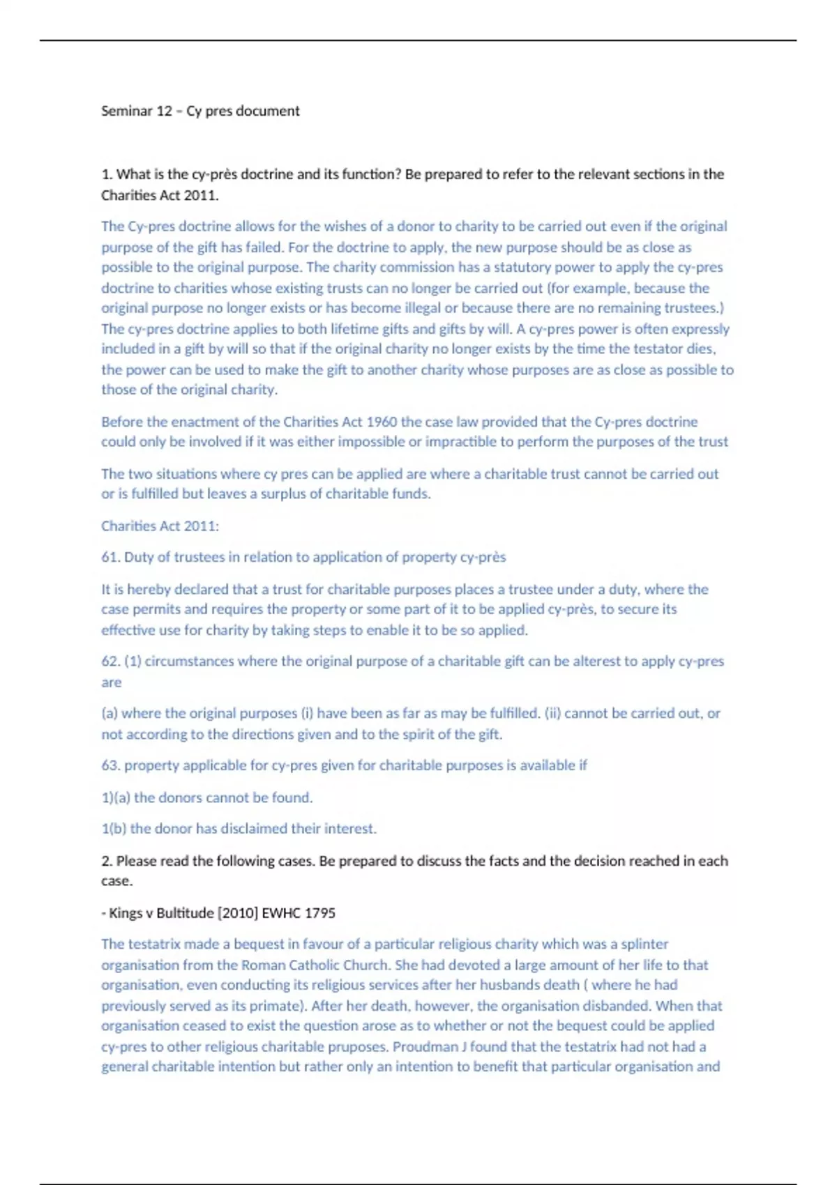 1. What is the cy-près doctrine and its function? Be prepared to refer to the relevant sections in the