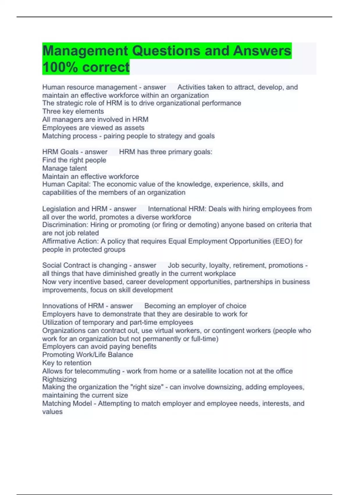 Human resource management - answer Activities taken to attract, develop, and maintain an effective workforce within an organization