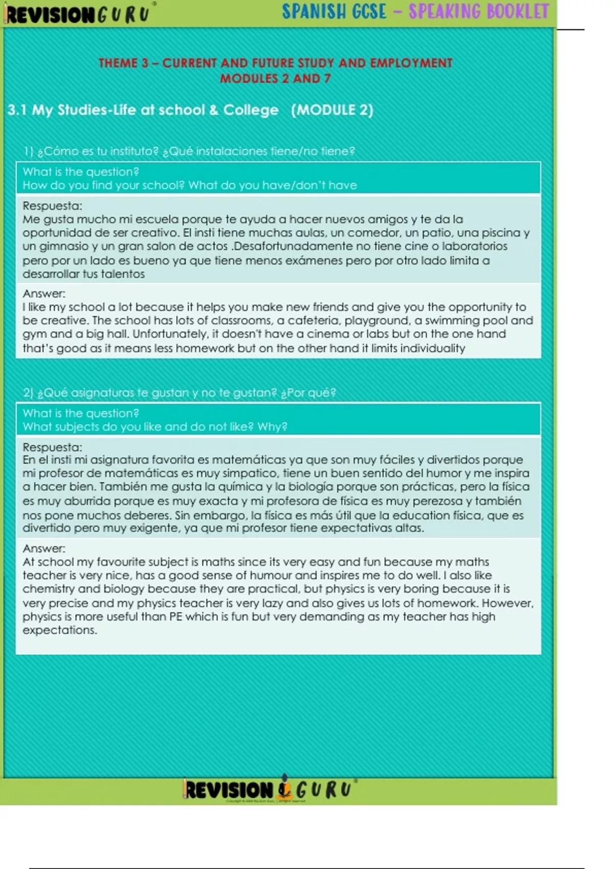 , ® SPANISH GCSE – SPEAKING BOOKLET