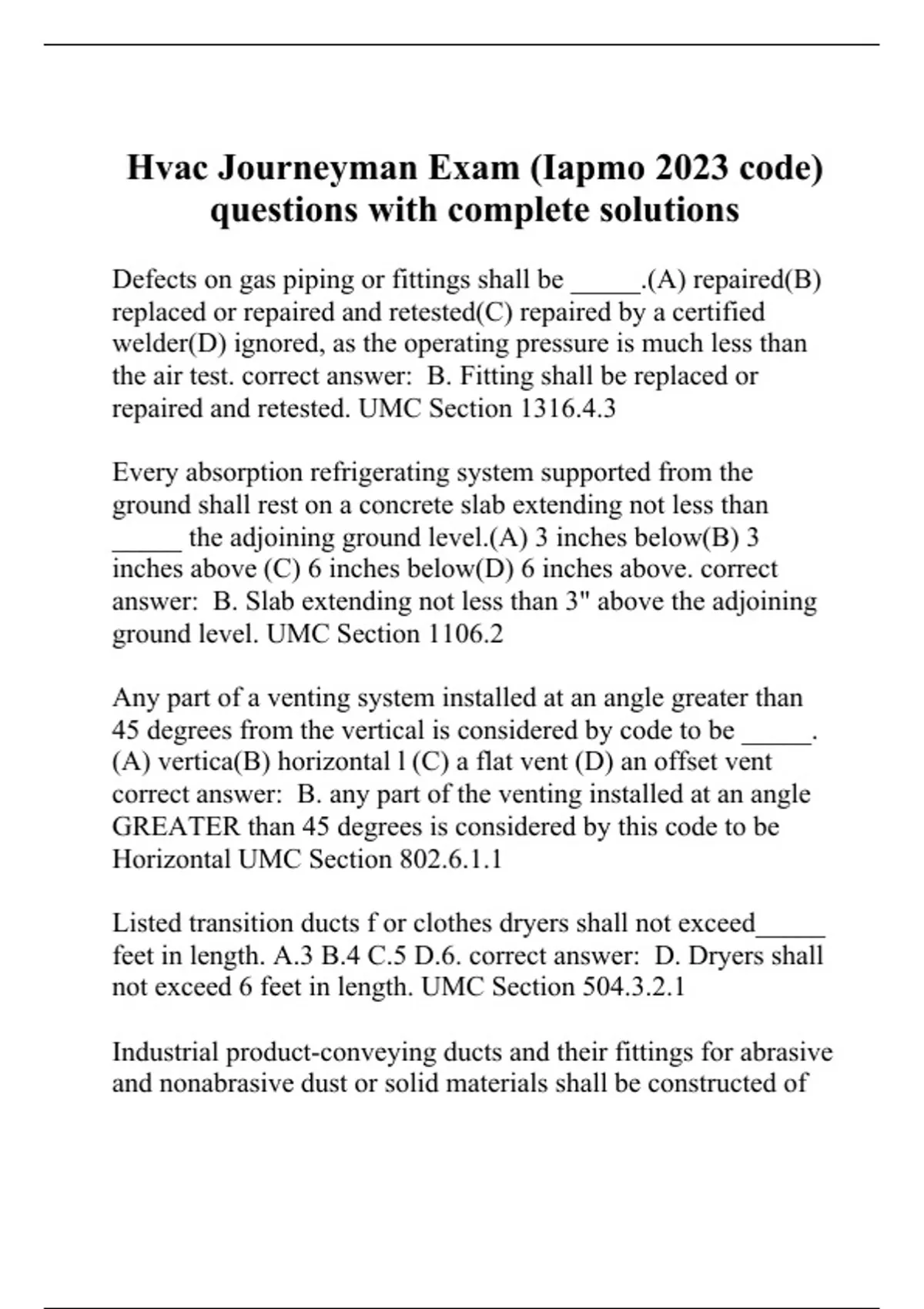 Hvac Journeyman Exam (Iapmo 2023 code) questions with complete solutions