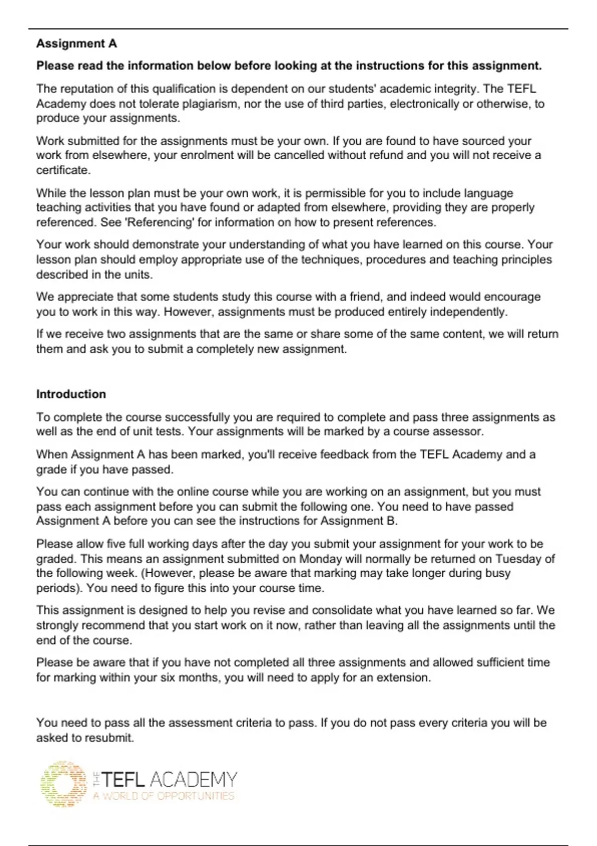 When Assignment A has been marked, you'll receive feedback from the TEFL Academy and a