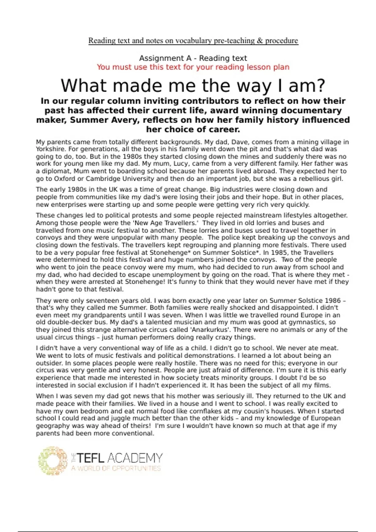 TEFL ACADEMY 168 hours Level 5 course Assignment A passed with MERIT and DISTINCTION degree. Exact materials with master evaluation feedback form!