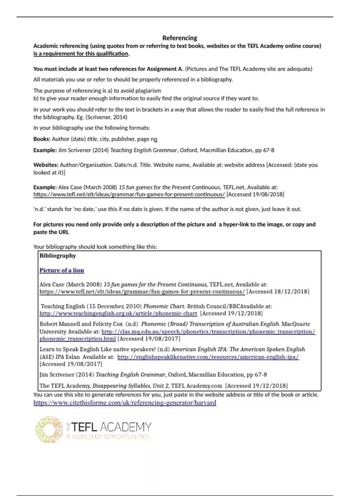 Summary TEFL ACADEMY LEVEL 5 COURSE - Referencing