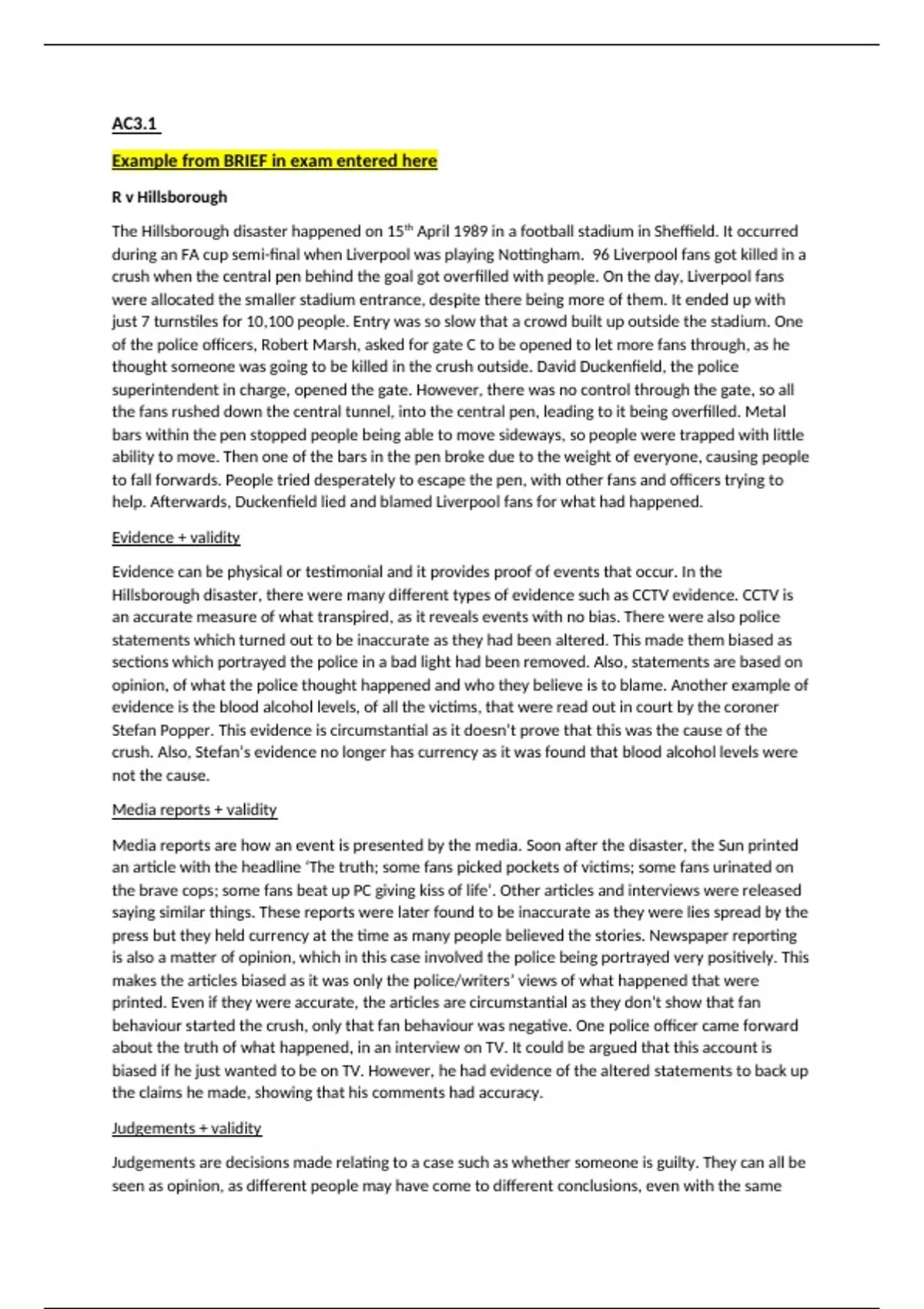 Hillsborough disaster, there were many different types of evidence such as CCTV evidence. CCTV is