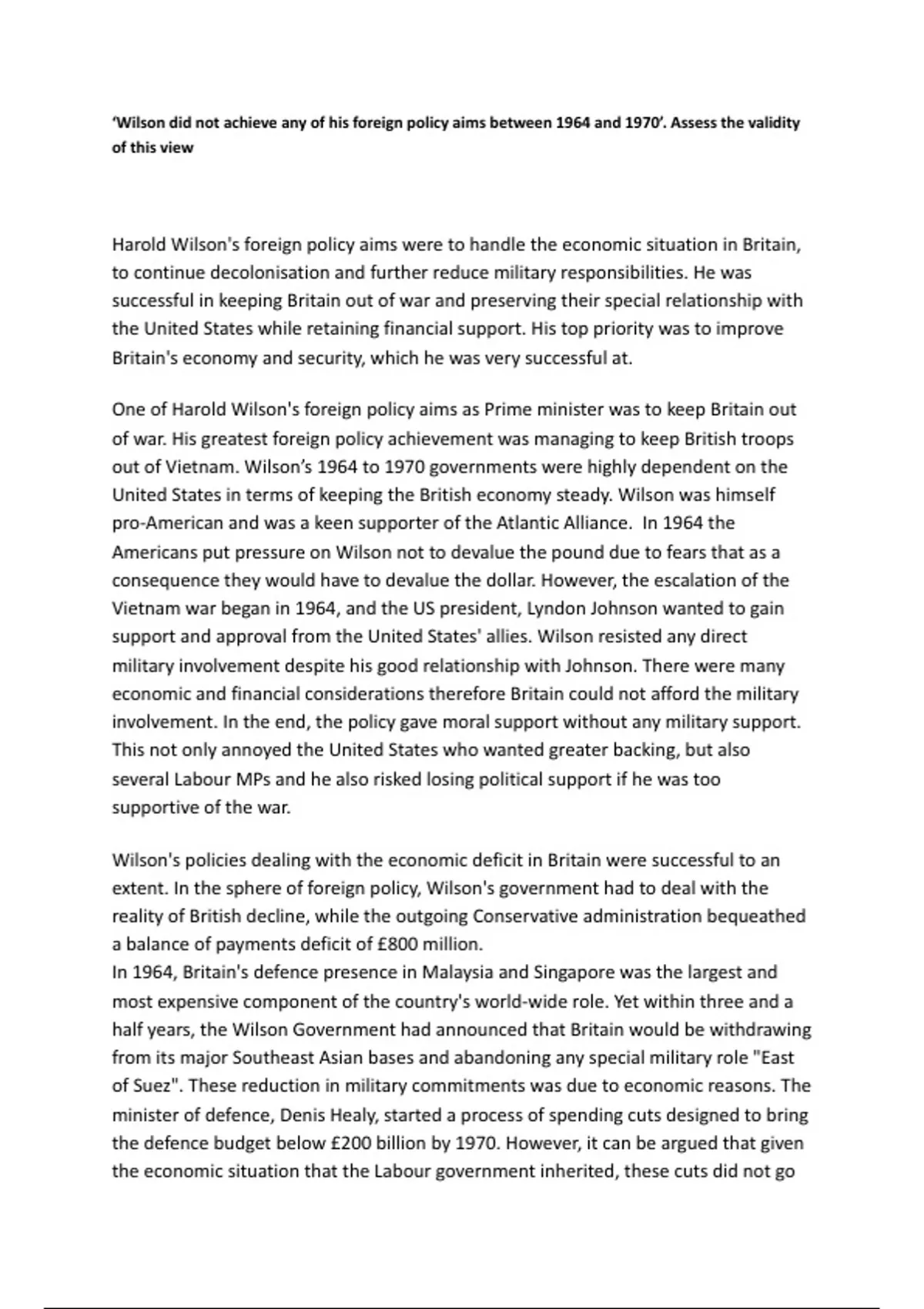 ‘Wilson did not achieve any of his foreign policy aims between 1964 and 1970’. Assess the validity