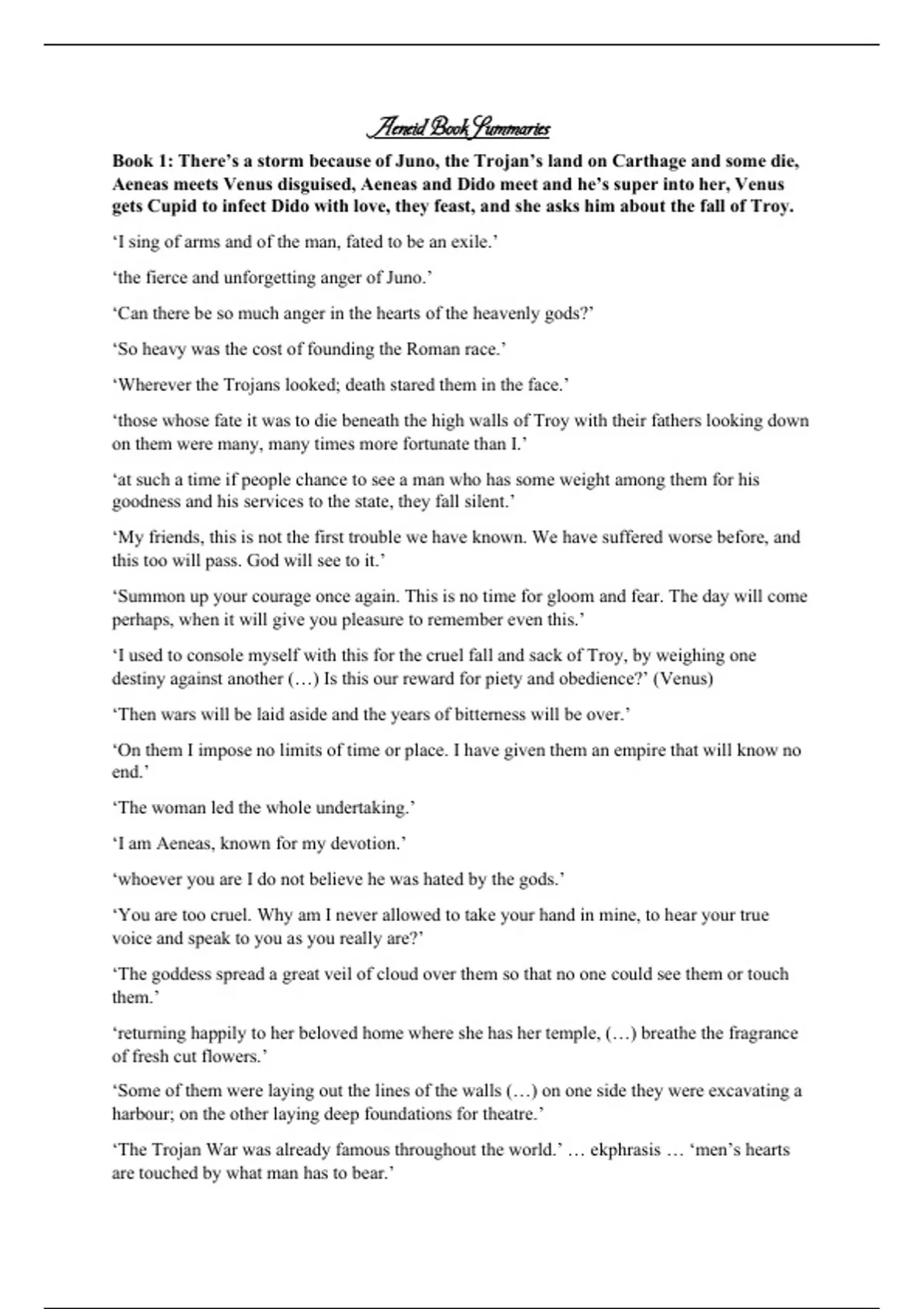 Aeneid Book Summaries