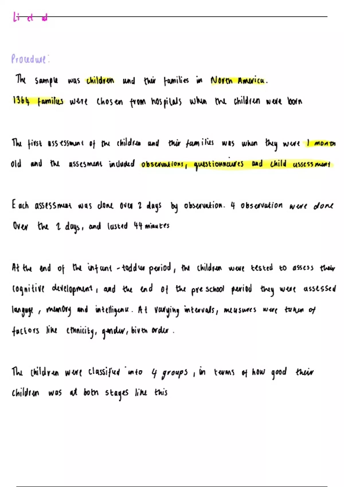Atthe end of theinfant toddlerperiod the children were tested to assess their