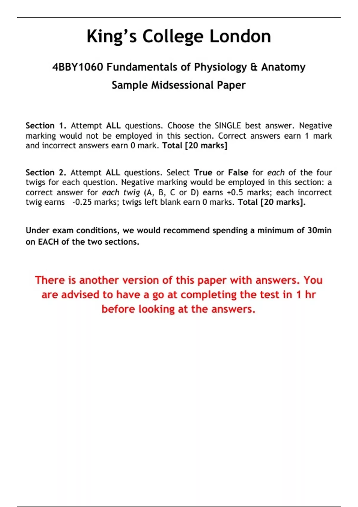 Under exam conditions, we would recommend spending a minimum of 30min