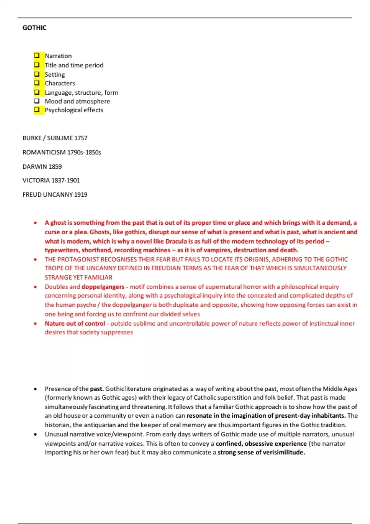 • THE PROTAGONIST RECOGNISES THEIR FEAR BUT FAILS TO LOCATE ITS ORIGNIS, ADHERING TO THE GOTHIC