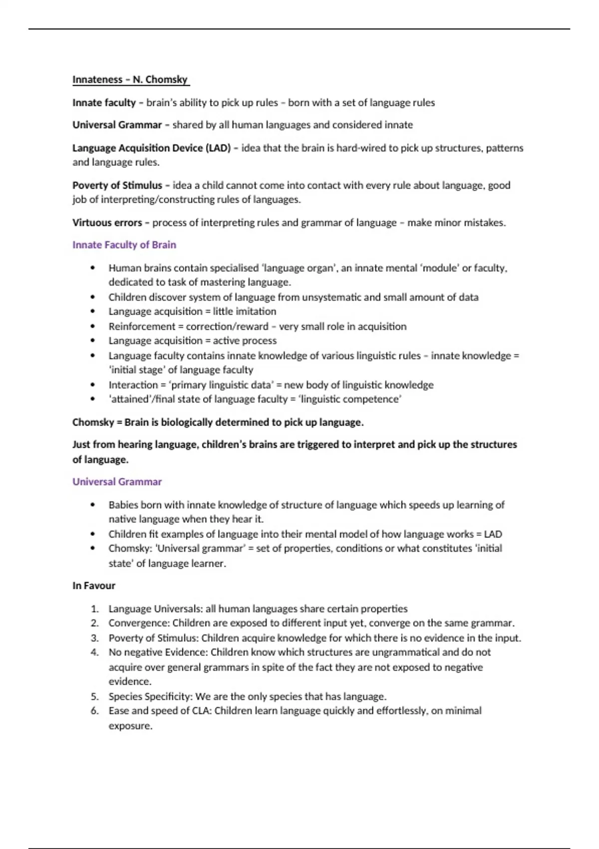 Some of my notes regarding Chomsky's theory of Innateness/Nativism. I obtained an A* in my exam in 2023.
