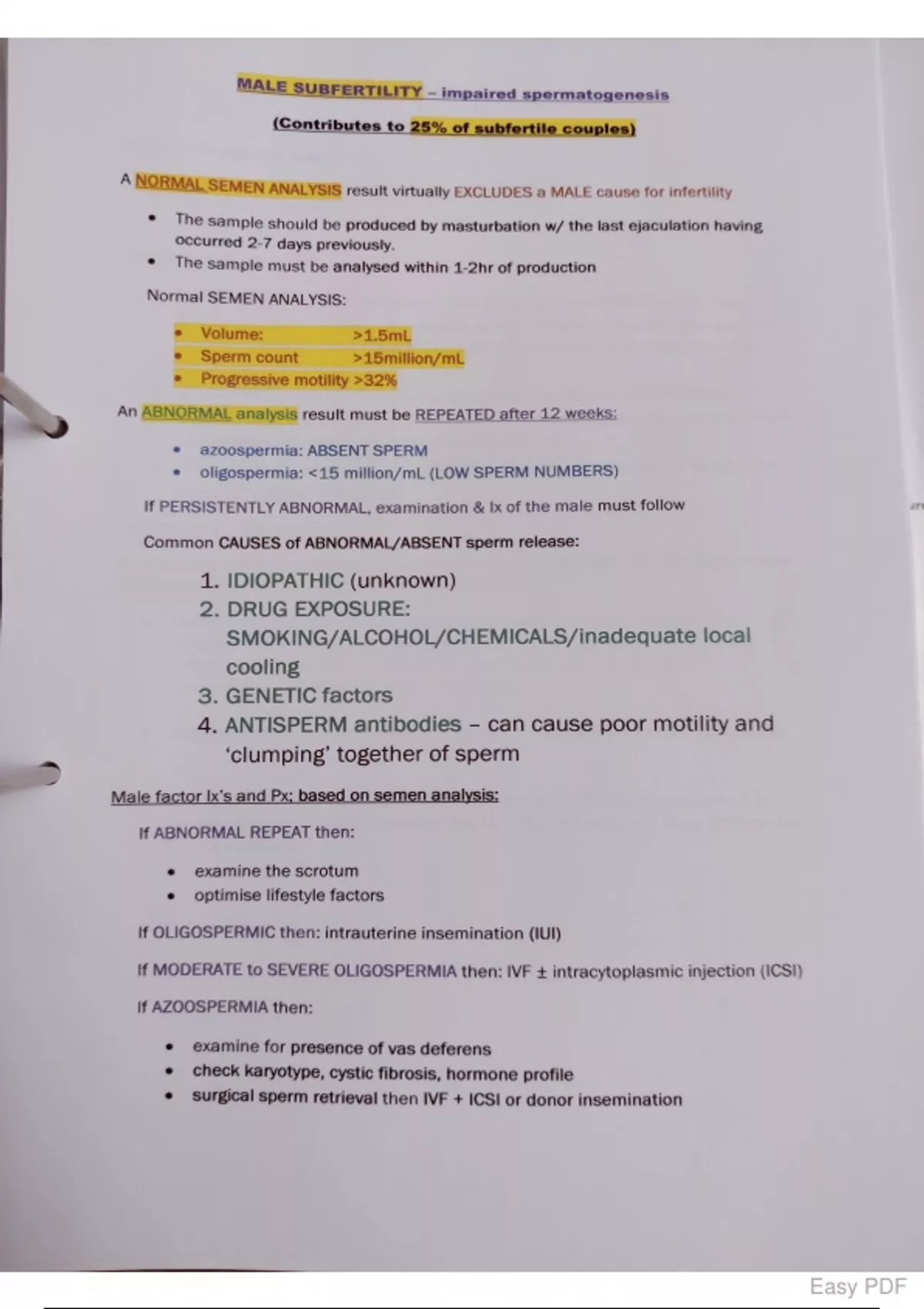 This set of revision notes gives a summary of male subfertility including the relevant definitions as well as a summary of tubal damage including the main causes and how to detect for this. These are two examples of subfertility. Useful crib sheets for the gynaecology rotation in the MBBS programme.
