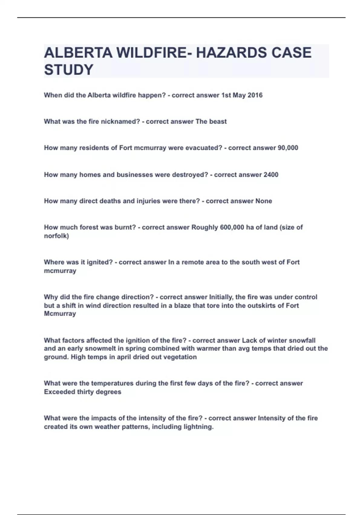 ALBERTA WILDFIRE- HAZARDS CASE STUDY|UPDATED&VERIFIED|100% SOLVED|GUARANTEED SUCCESS