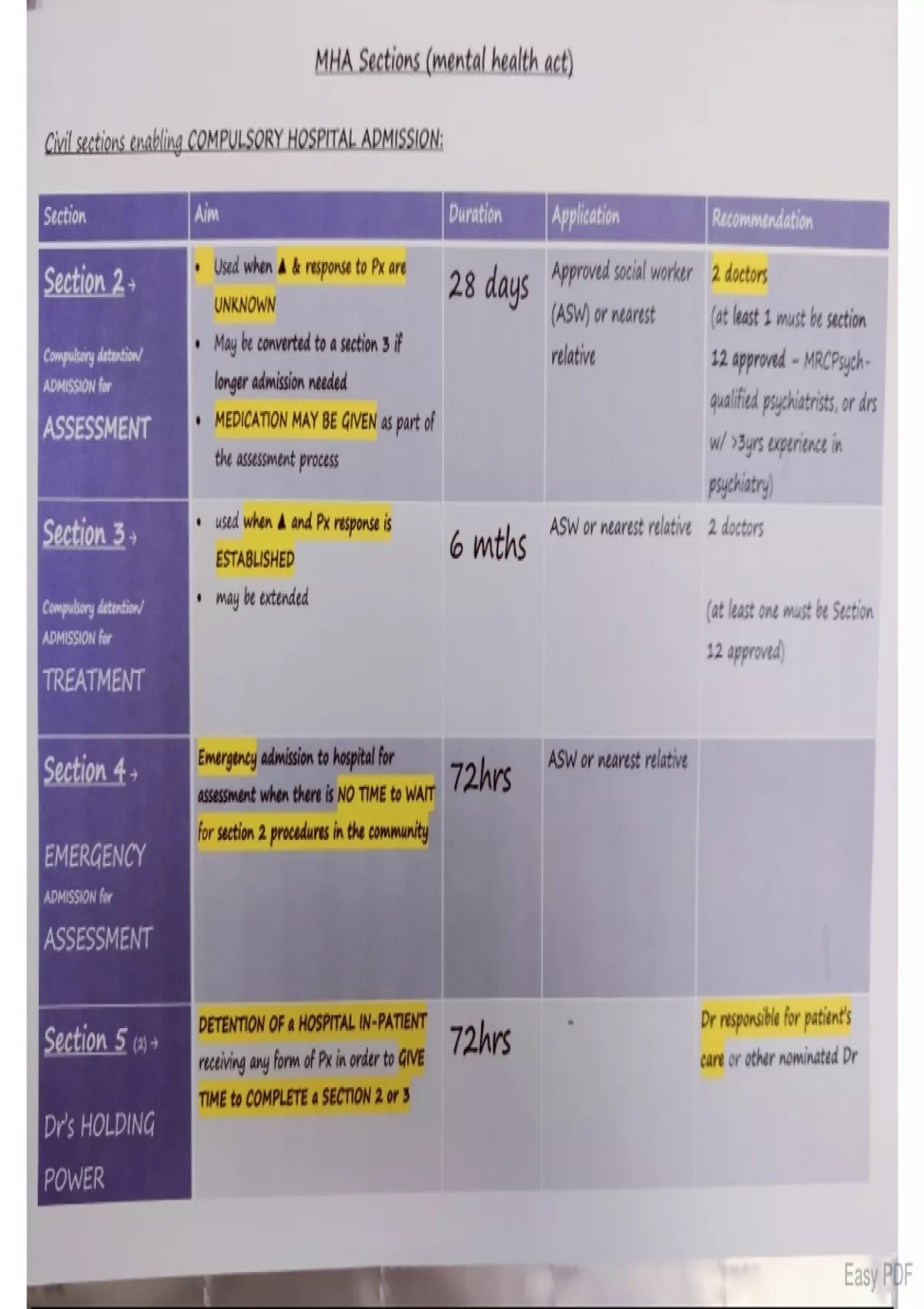 This document includes several pages of summaries on various psychiatry topics including alcohol disorders and the complications, explanations of the delusional syndromes, a table of the different sections in the mental health act, and summaries of the different anxiety disorders including phobic anxiety, generalised anxiety disorder, panic disorder and PTSD. It also includes a detailed summary of the different depression treatments and a cribsheet on mania including symptoms and management