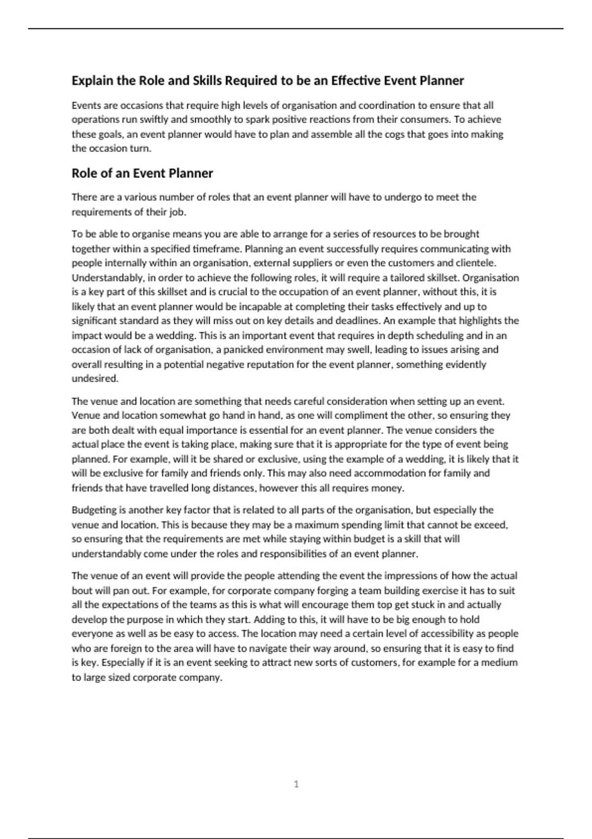 is a key part of this skillset and is crucial to the occupation of an event planner, without this, it is