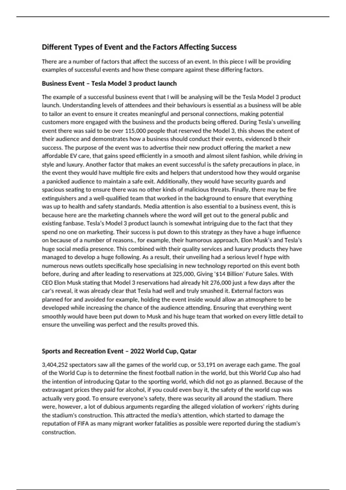 The example of a successful business event that I will be analysing will be the Tesla Model 3 product