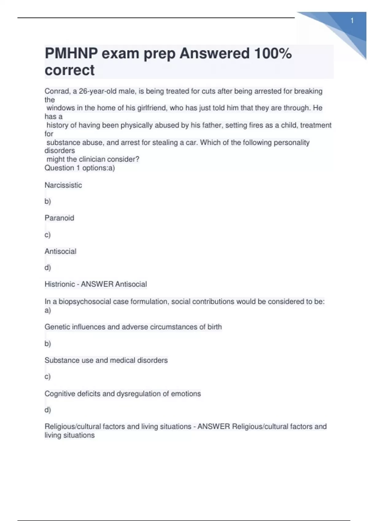 PMHNP exam prep questions with 100% correct answers PMHNP exam prep questions with 100% correct answers PMHNP exam prep questions with 100% correct answers