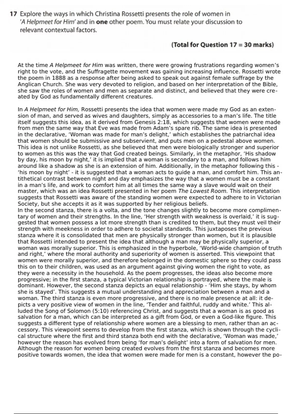 A-level english lit (edexcel) practice question for Rossetti poetry paper.
