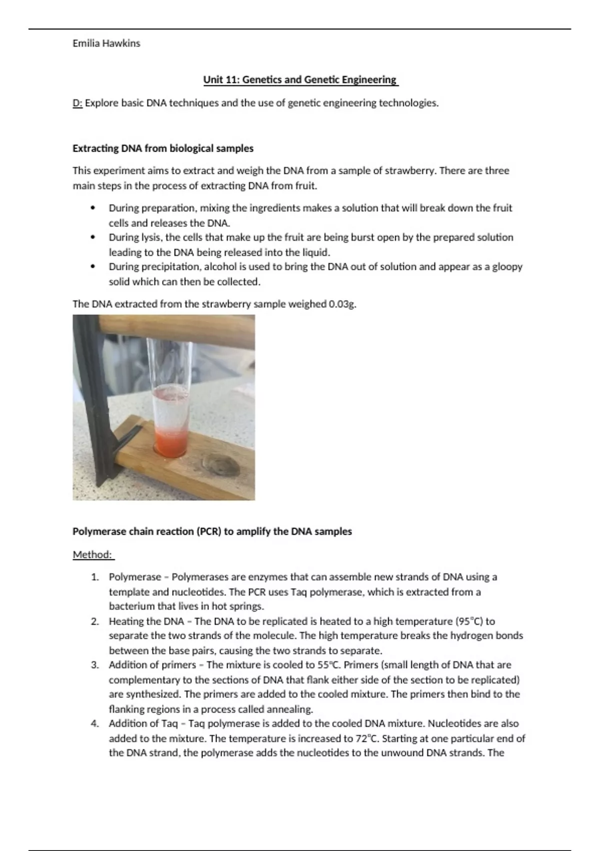 This experiment aims to extract and weigh the DNA from a sample of strawberry. There are three