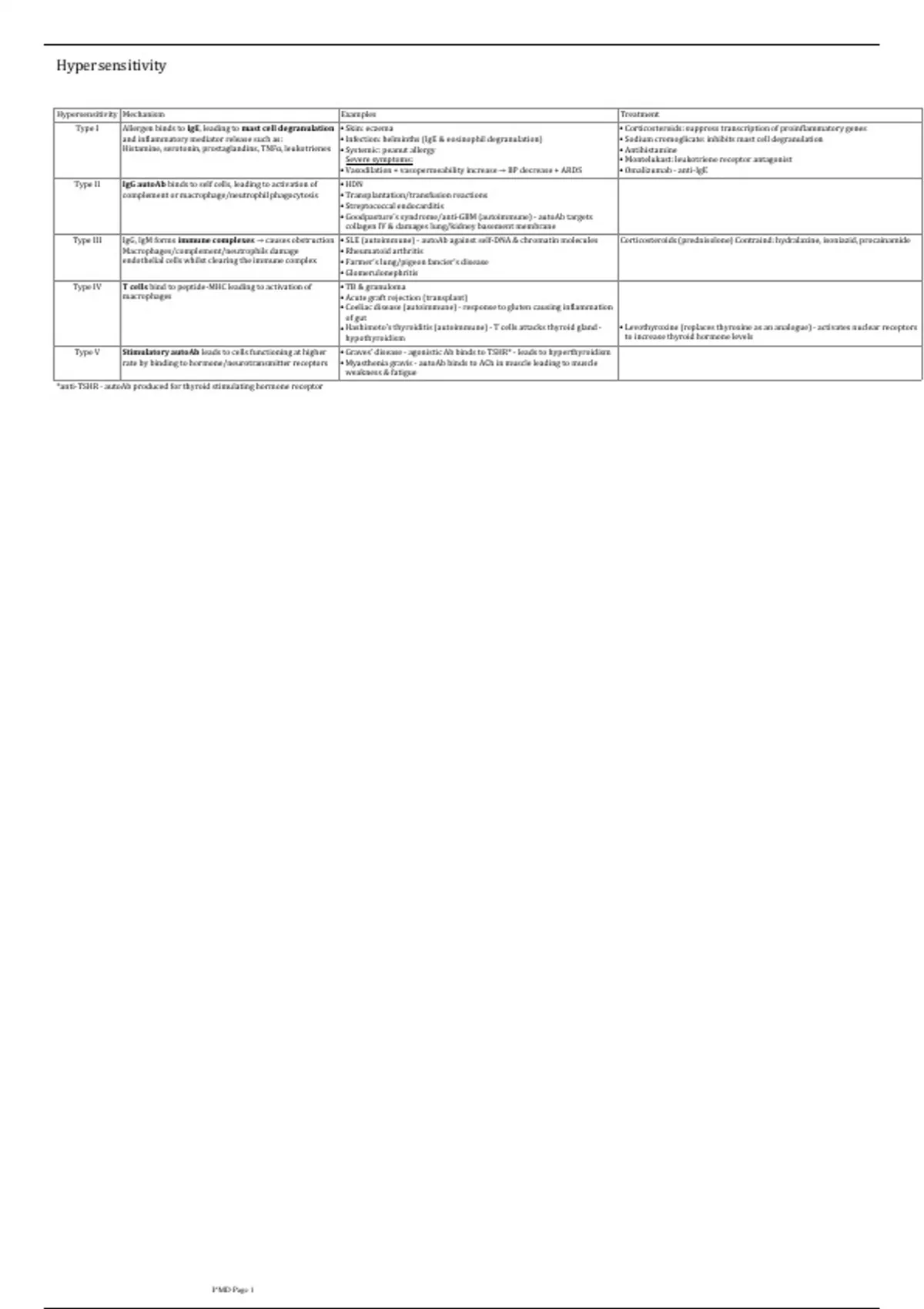Hypersensitivity Mechanism Examples Treatment