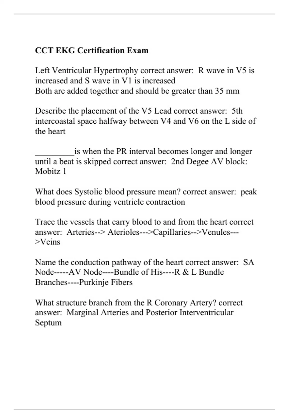 CCT EKG Certification Exam Questions With Complete Solutions