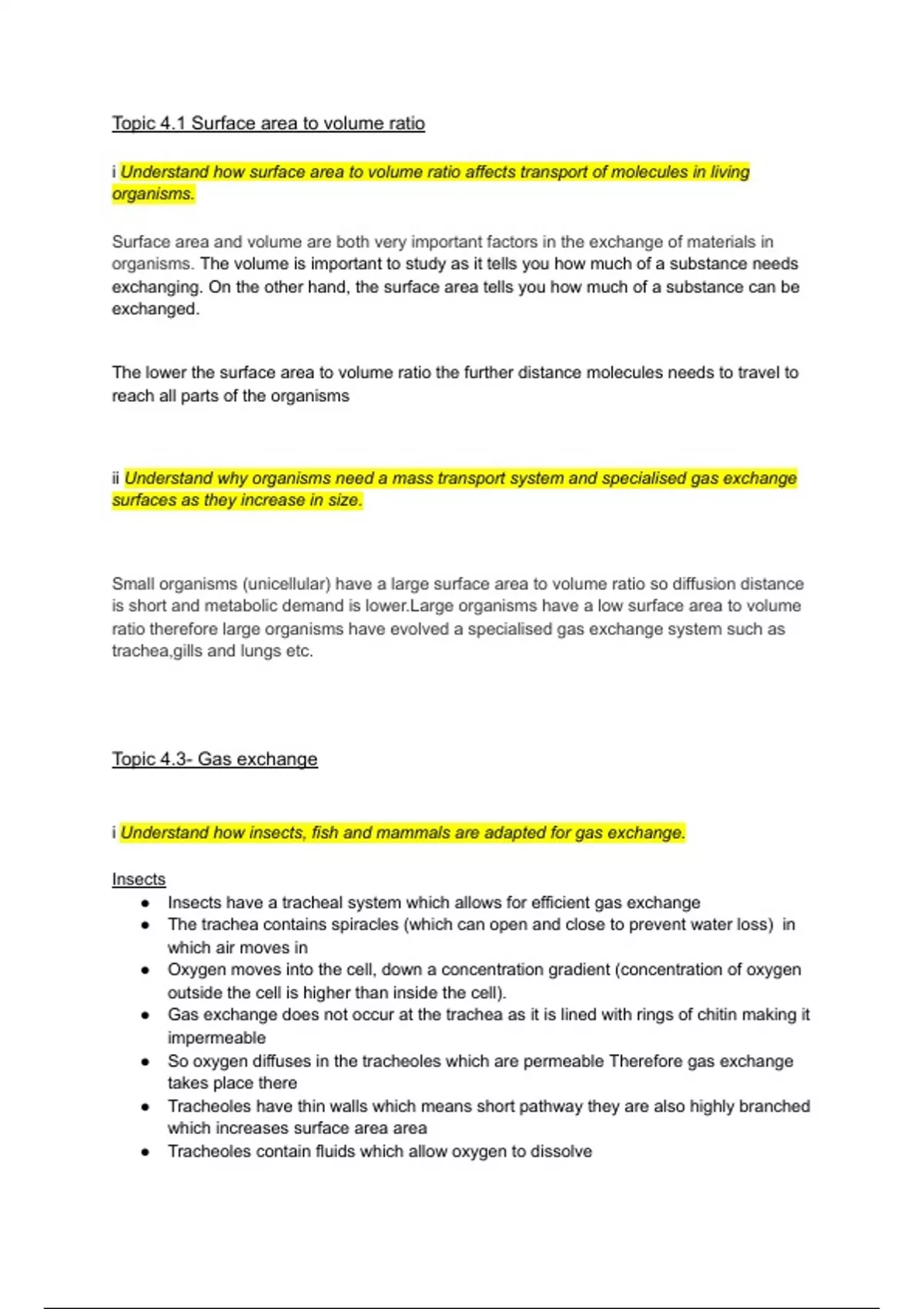 Topic 4.3- Gas exchange