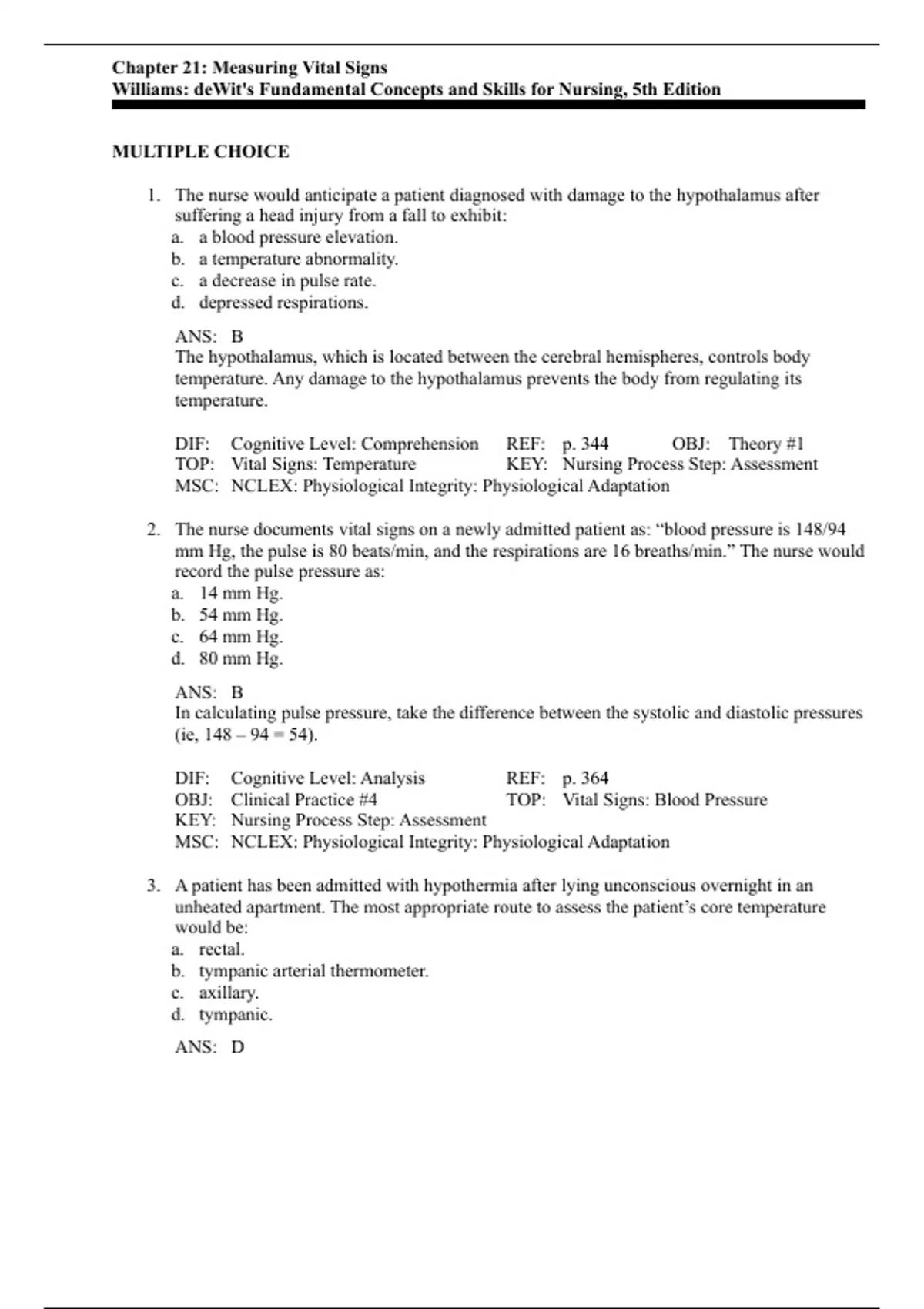 TOP: Vital Signs: Temperature KEY: Nursing Process Step: Assessment