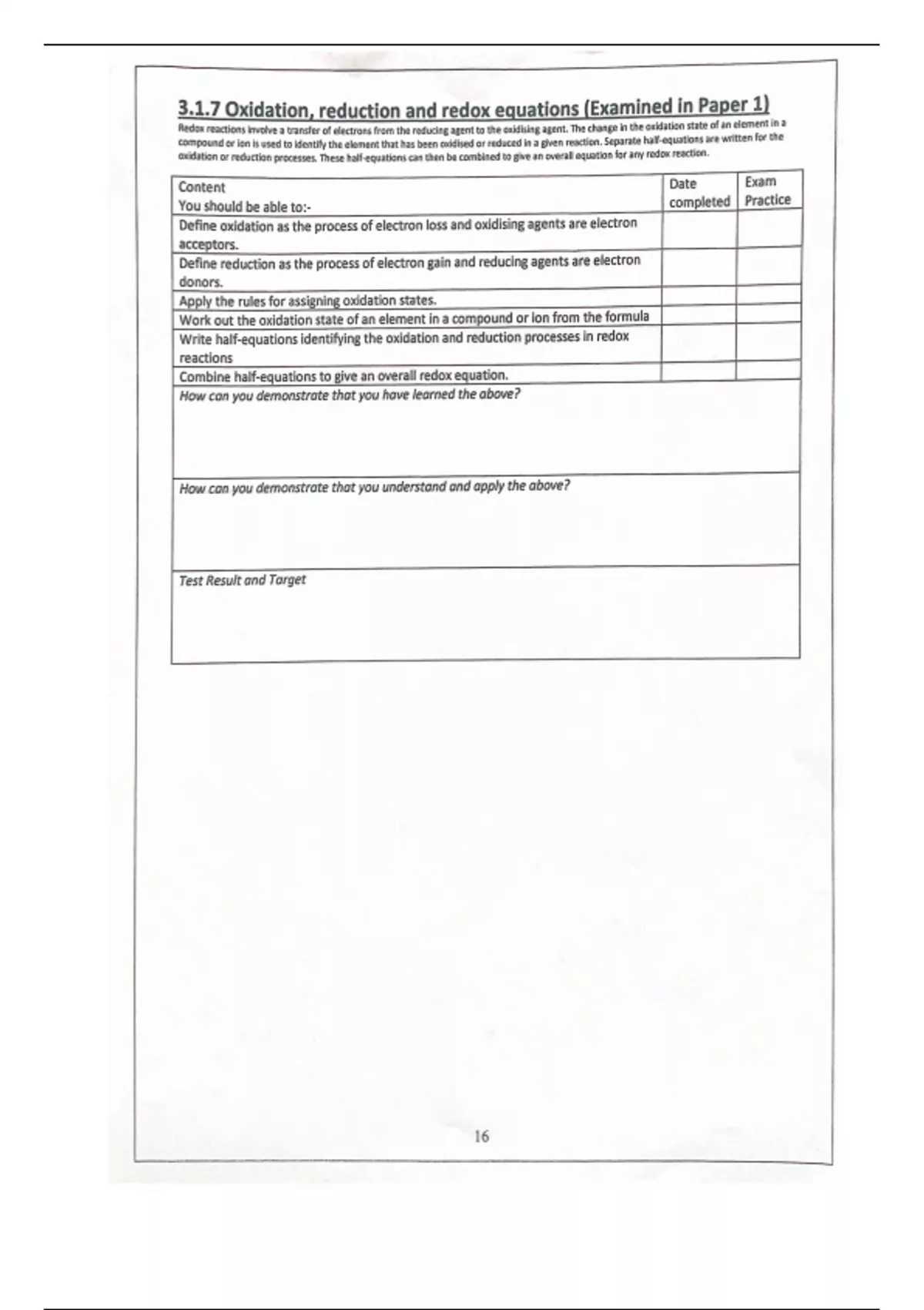 Lesson notes Unit 3.1.7 - Oxidation, reduction and redox equations