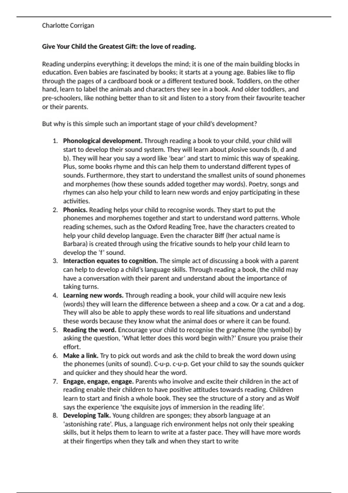 An article I produced for a piece of A-level English Language about the importance of teaching a child to read.
