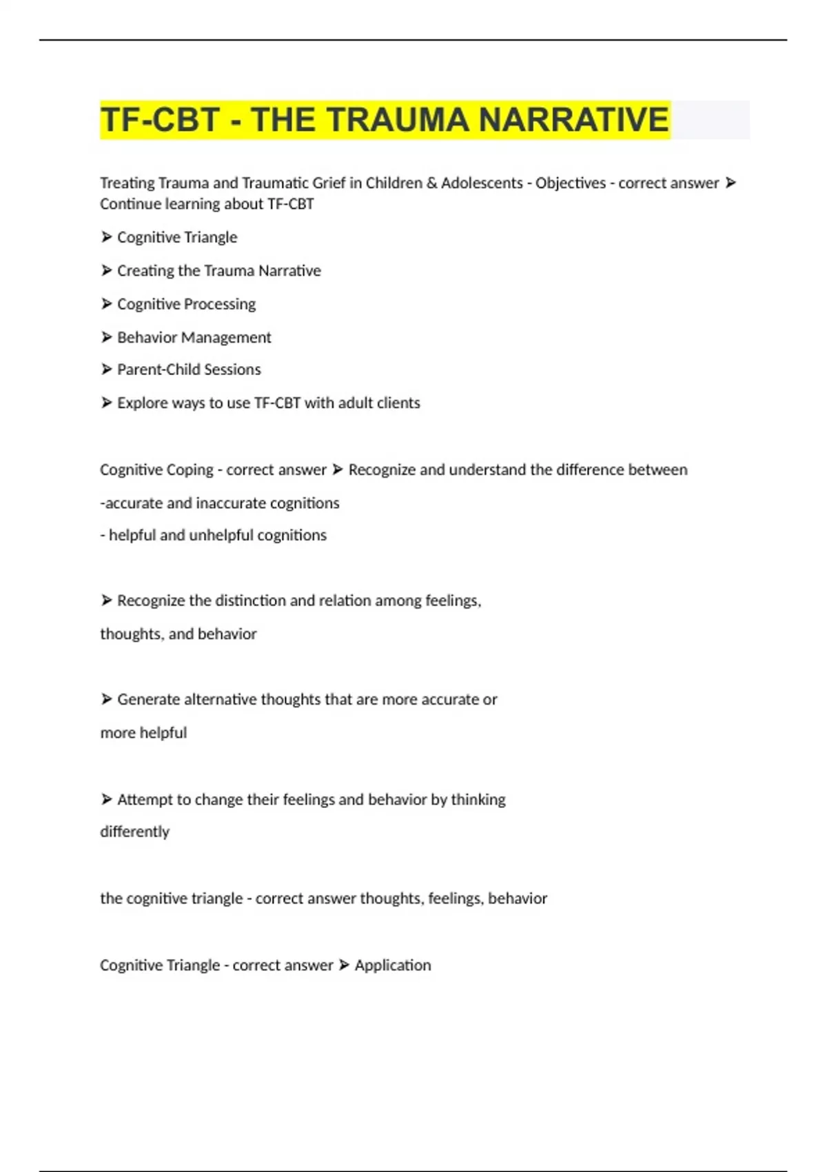 TF-CBT - THE TRAUMA NARRATIVE|2023/24 UPDATE|GRADED A+