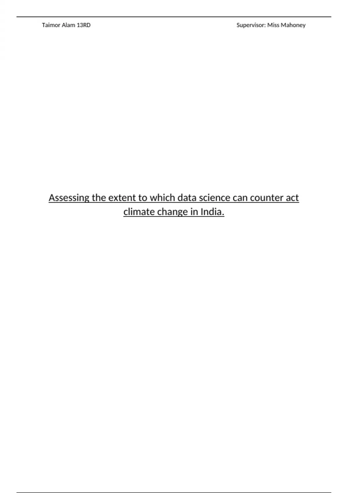 , Taimor Alam 13RD Supervisor: Miss Mahoney