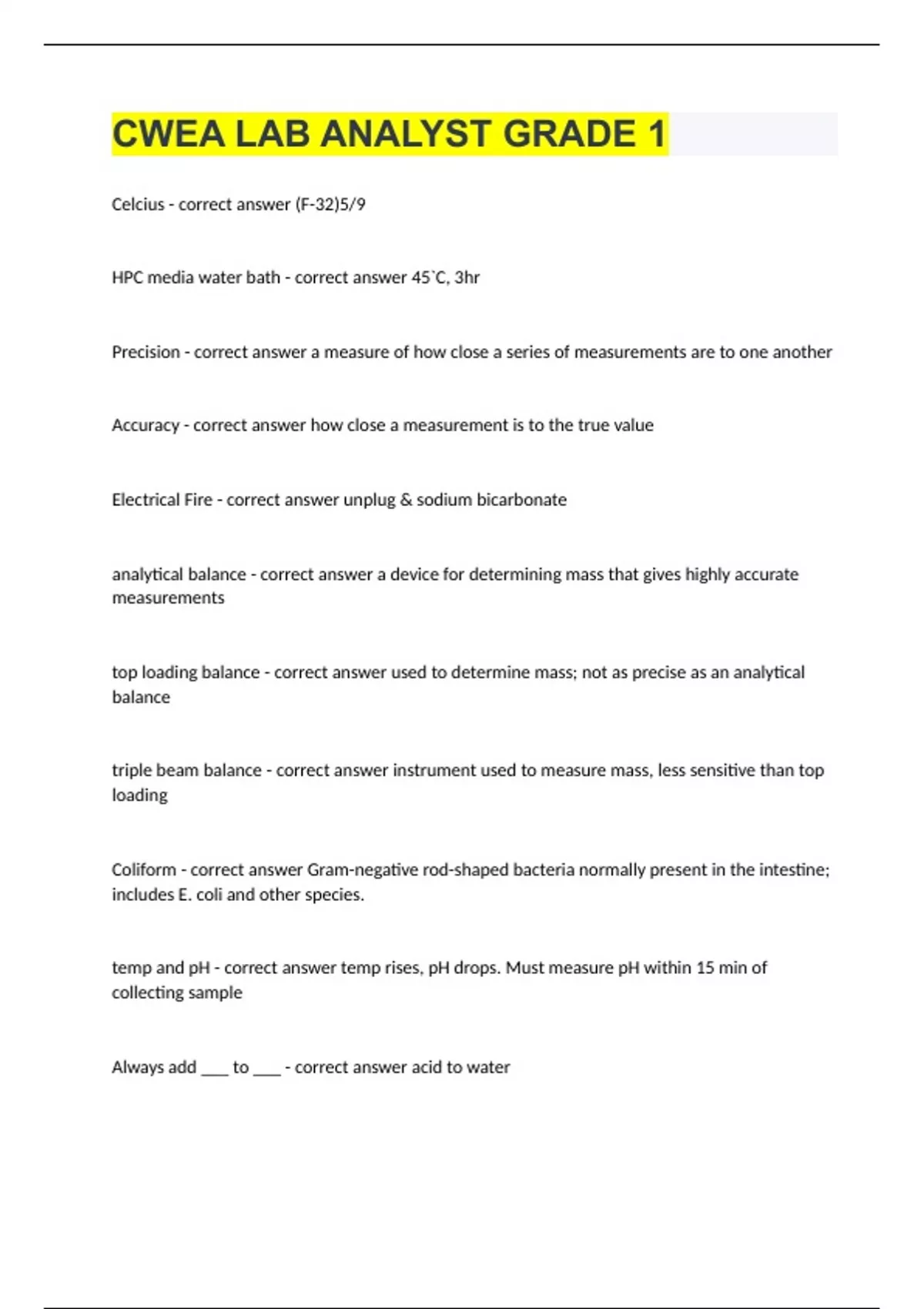 CWEA LAB ANALYST GRADE 1|2023/24 UPDATE|GRADED A+