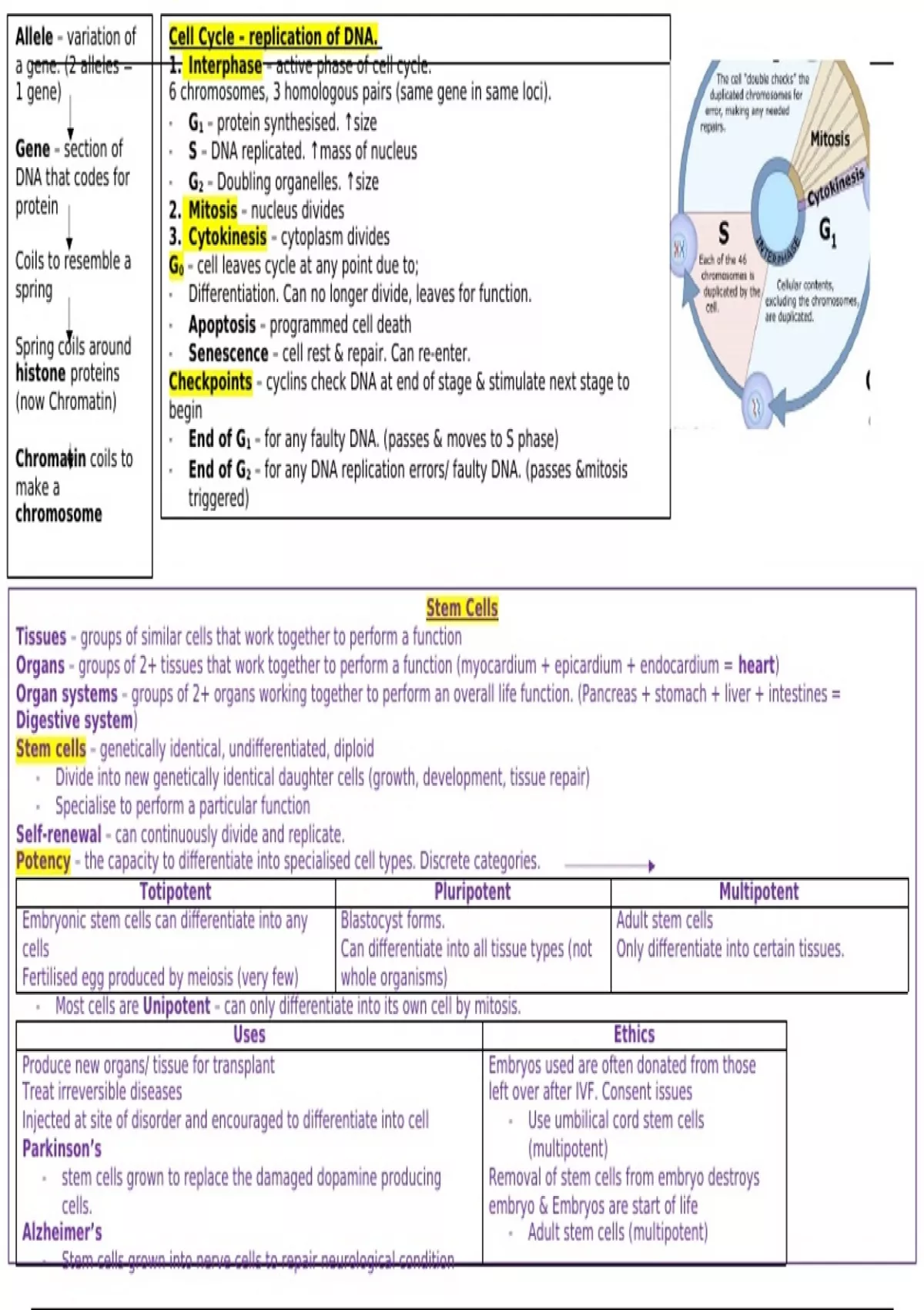 Allele – variation of Cell Cycle – replication of DNA.