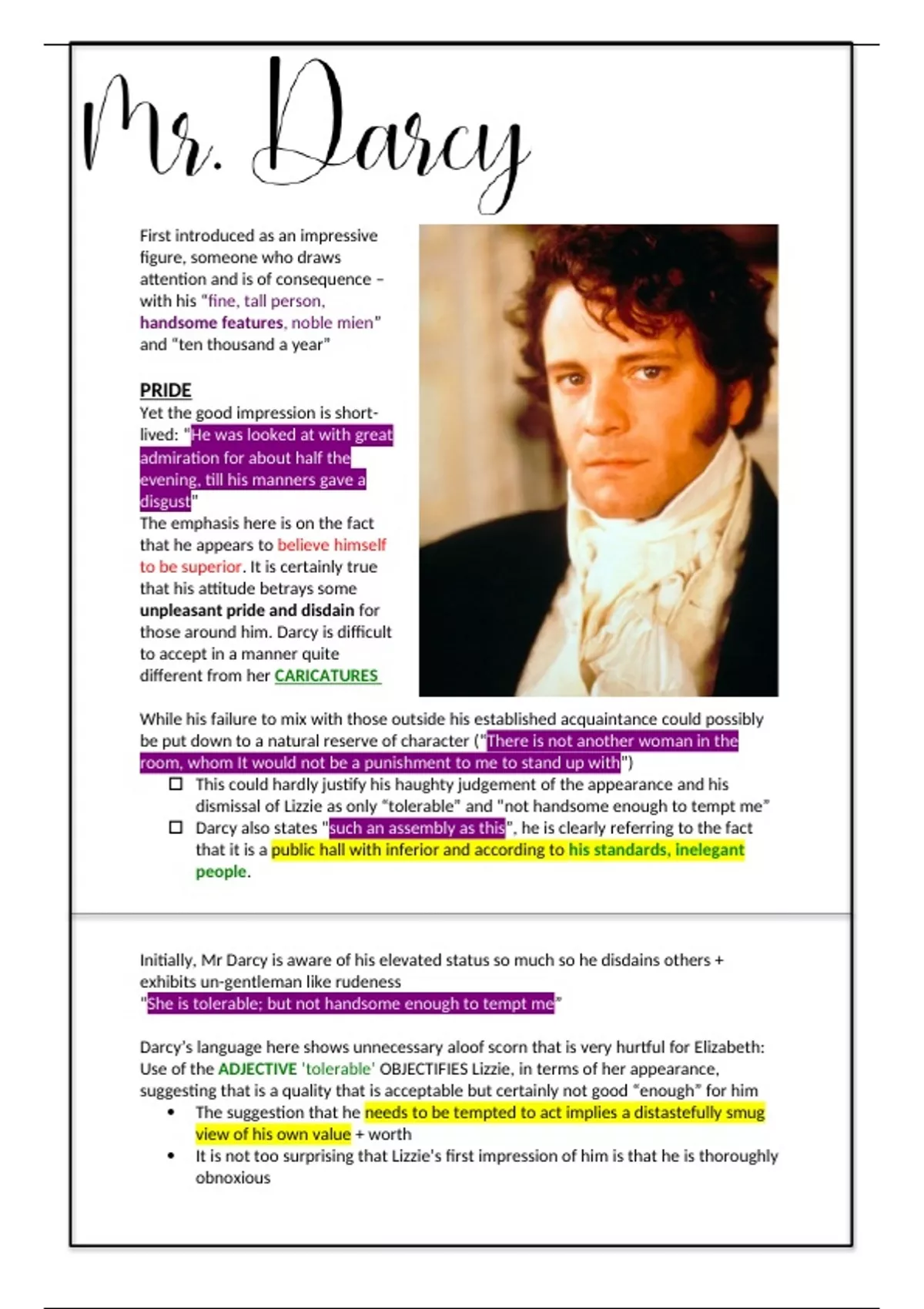 Initially, Mr Darcy is aware of his elevated status so much so he disdains others +