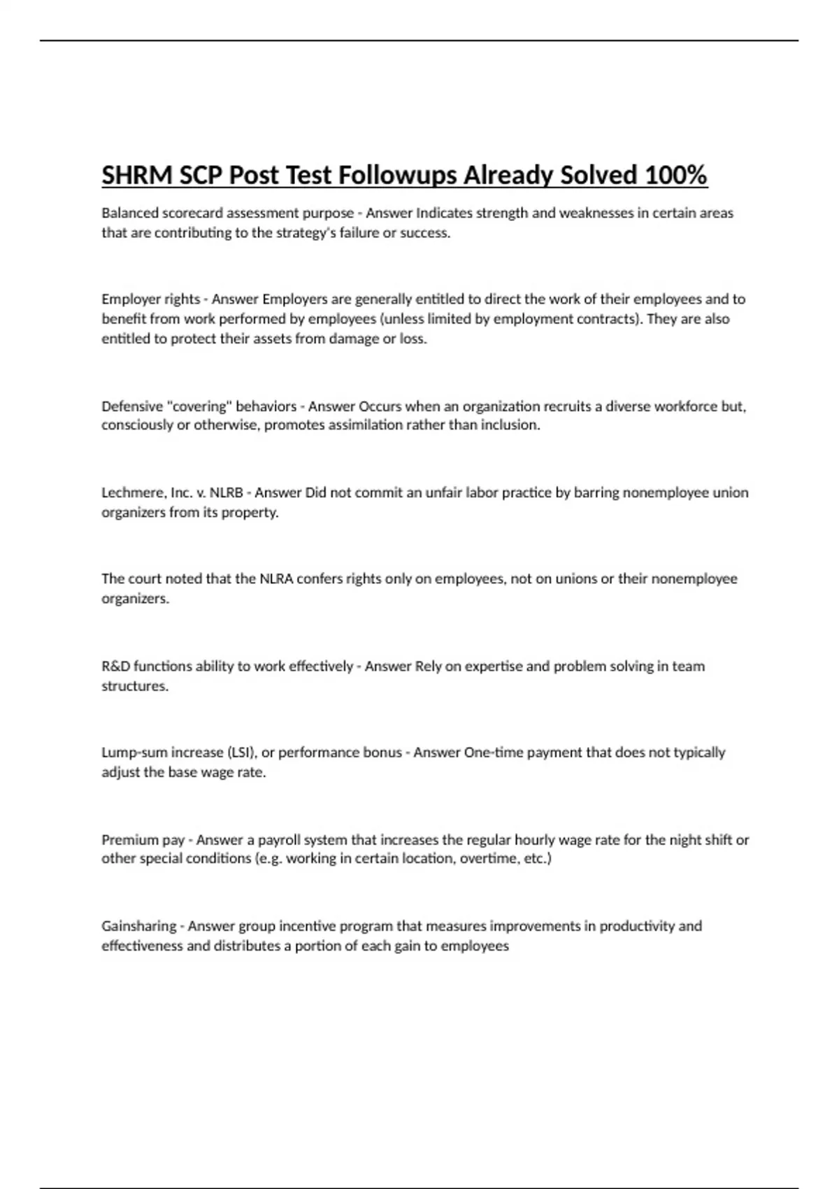 SHRM SCP Post Test Followups Already Solved 100%