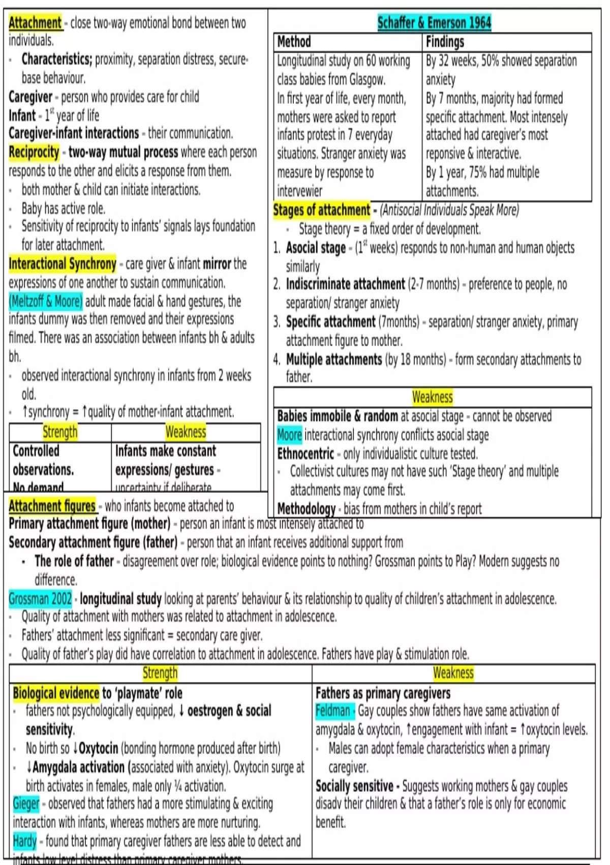 - ↑synchrony = ↑quality of mother-infant attachment. Babies immobile & random at asocial stage – cannot be observed